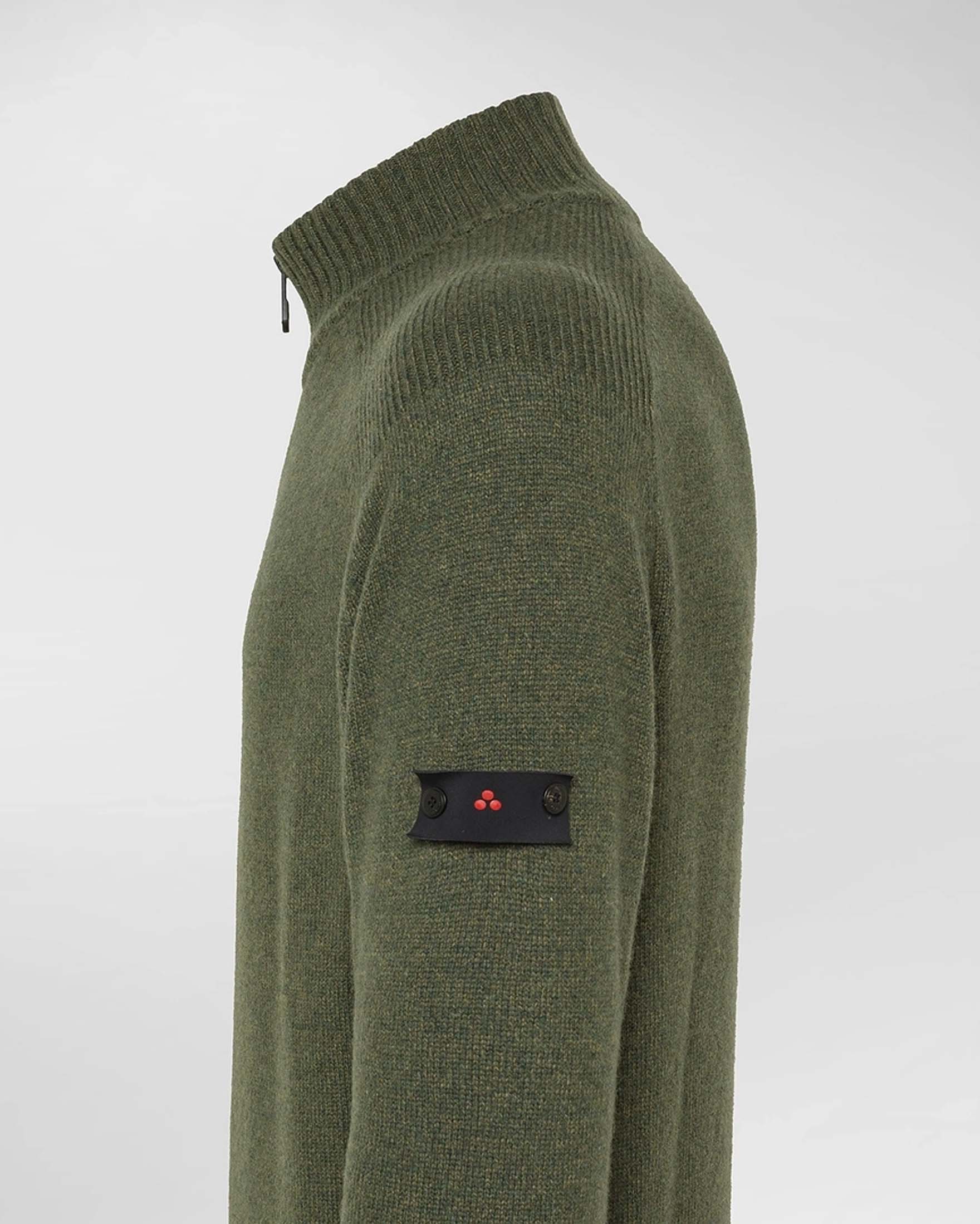 Maglia Braille Peuterey verde militare in tricot di misto lana moulinè con apertura a mezza zip