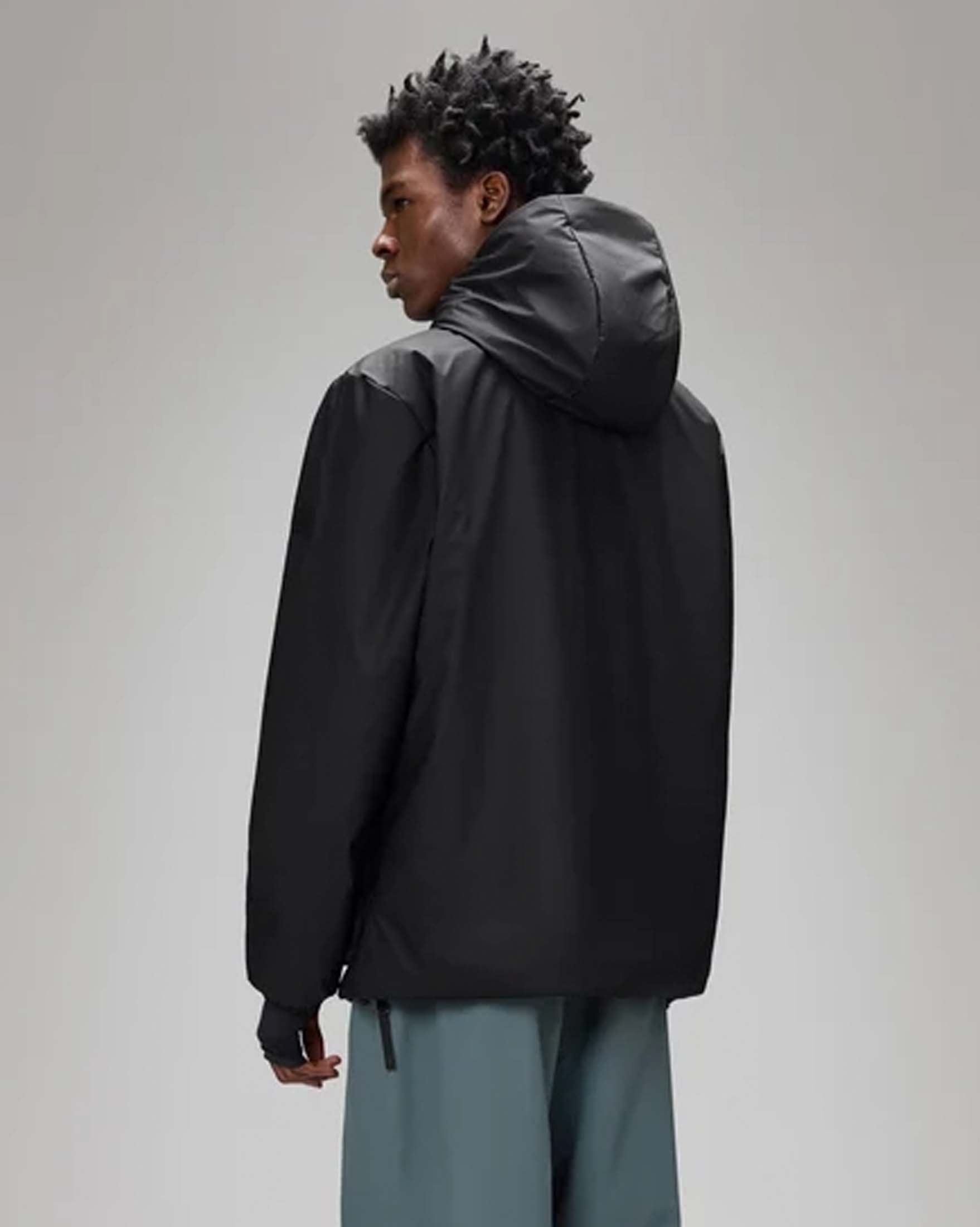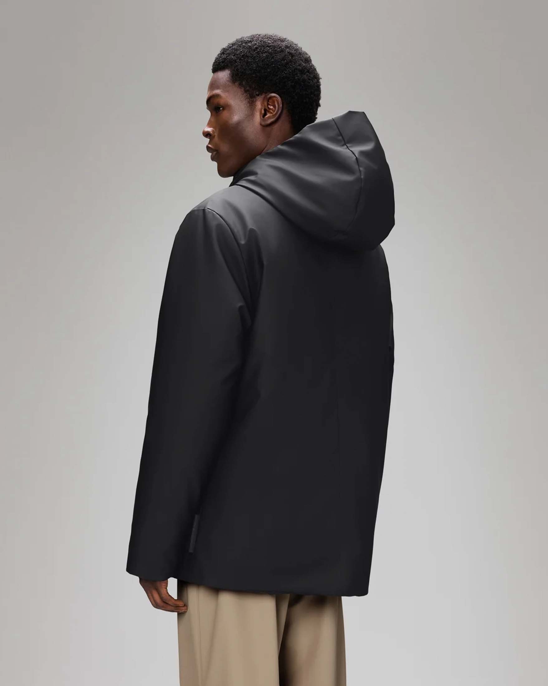 Nome Parka Rains nero in tessuto tecnico leggero effetto gommato con cappuccio