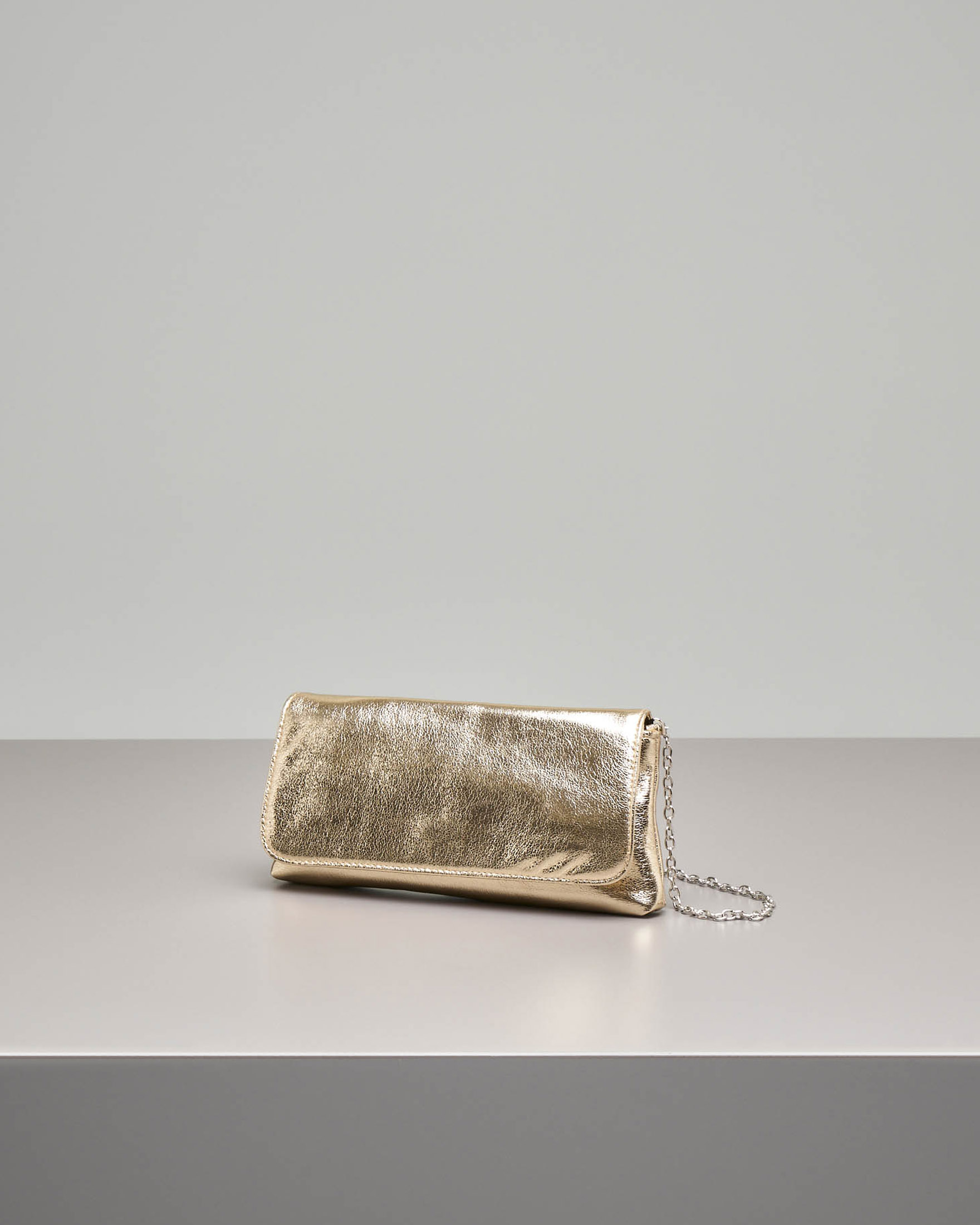Pochette a busta in ecopelle color oro effetto laminato
