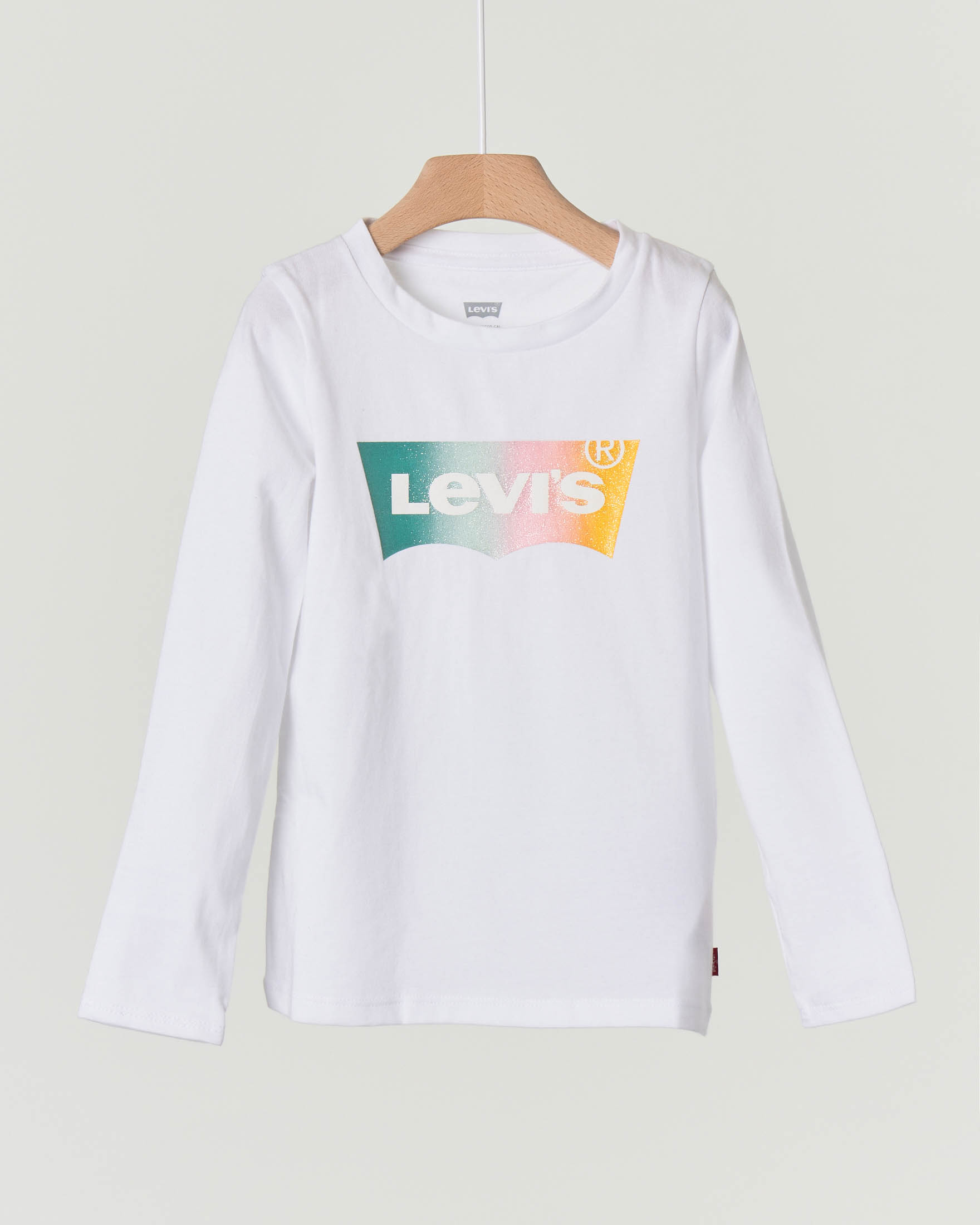 T-shirt bianca manica lunga con logo batwing multicolor glitter 3-8 anni -30%