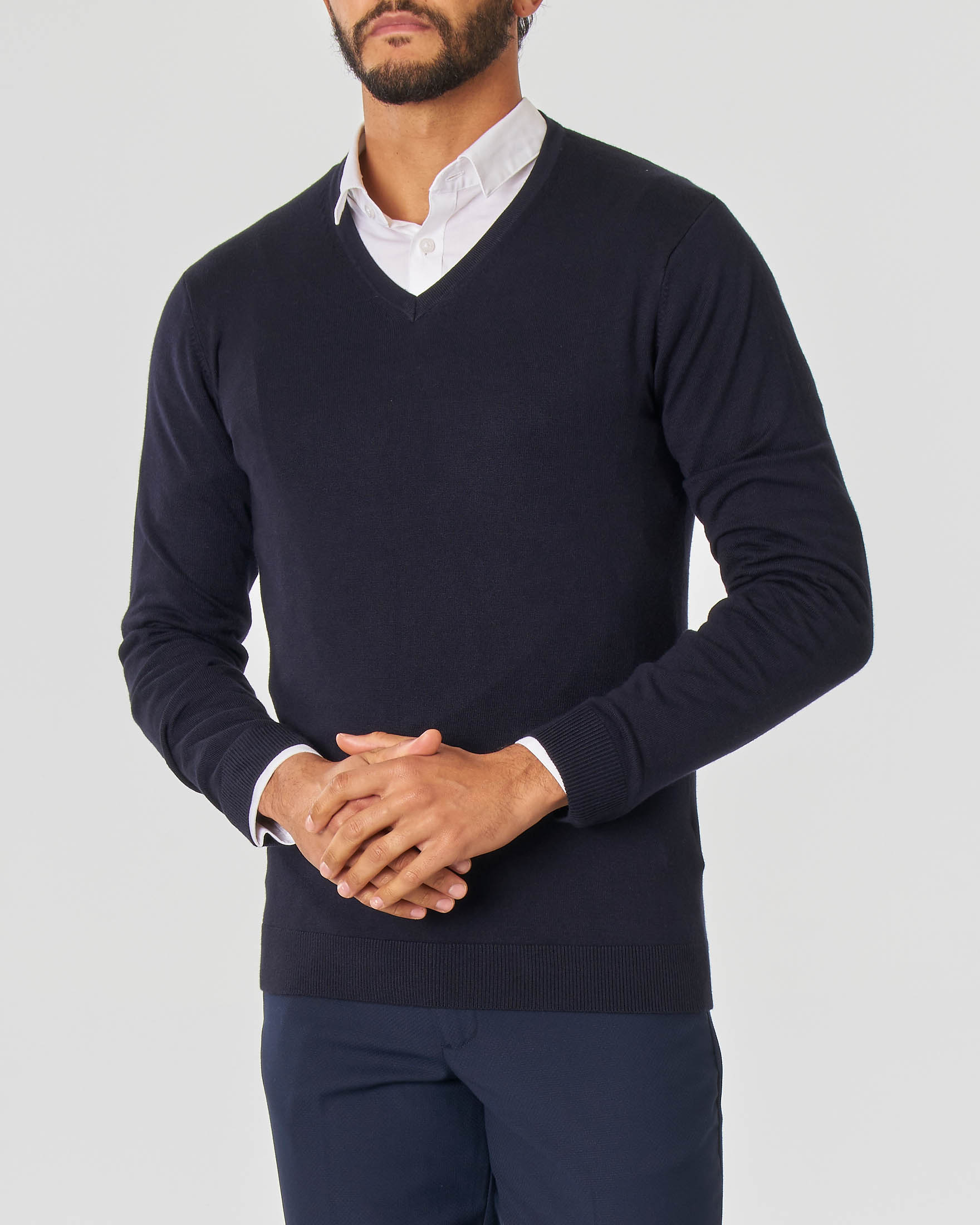 Maglia Paul Baker blu scollo a V tinta unita