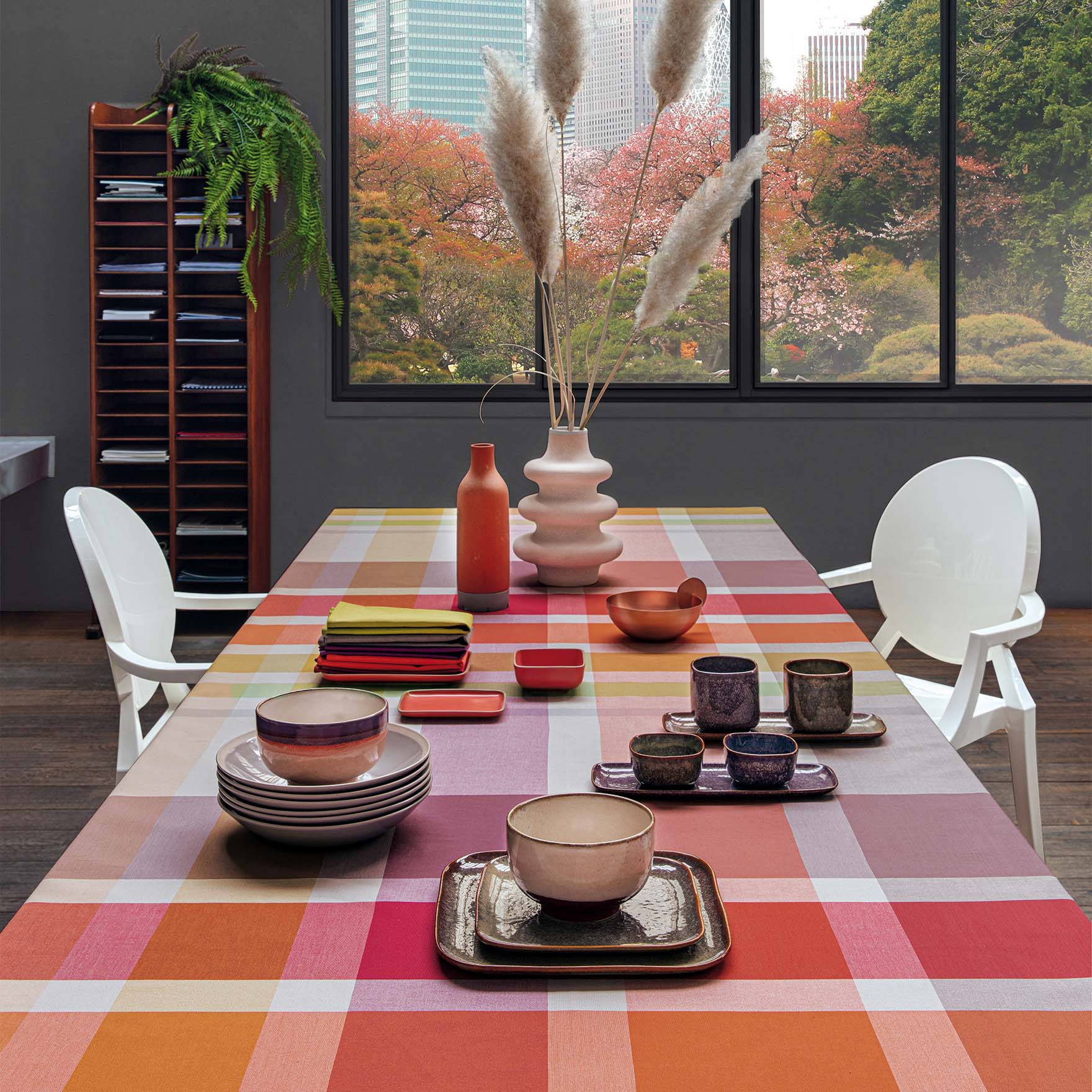 Tovaglia rotonda per 8 persone a fantasia tartan arancione e verde