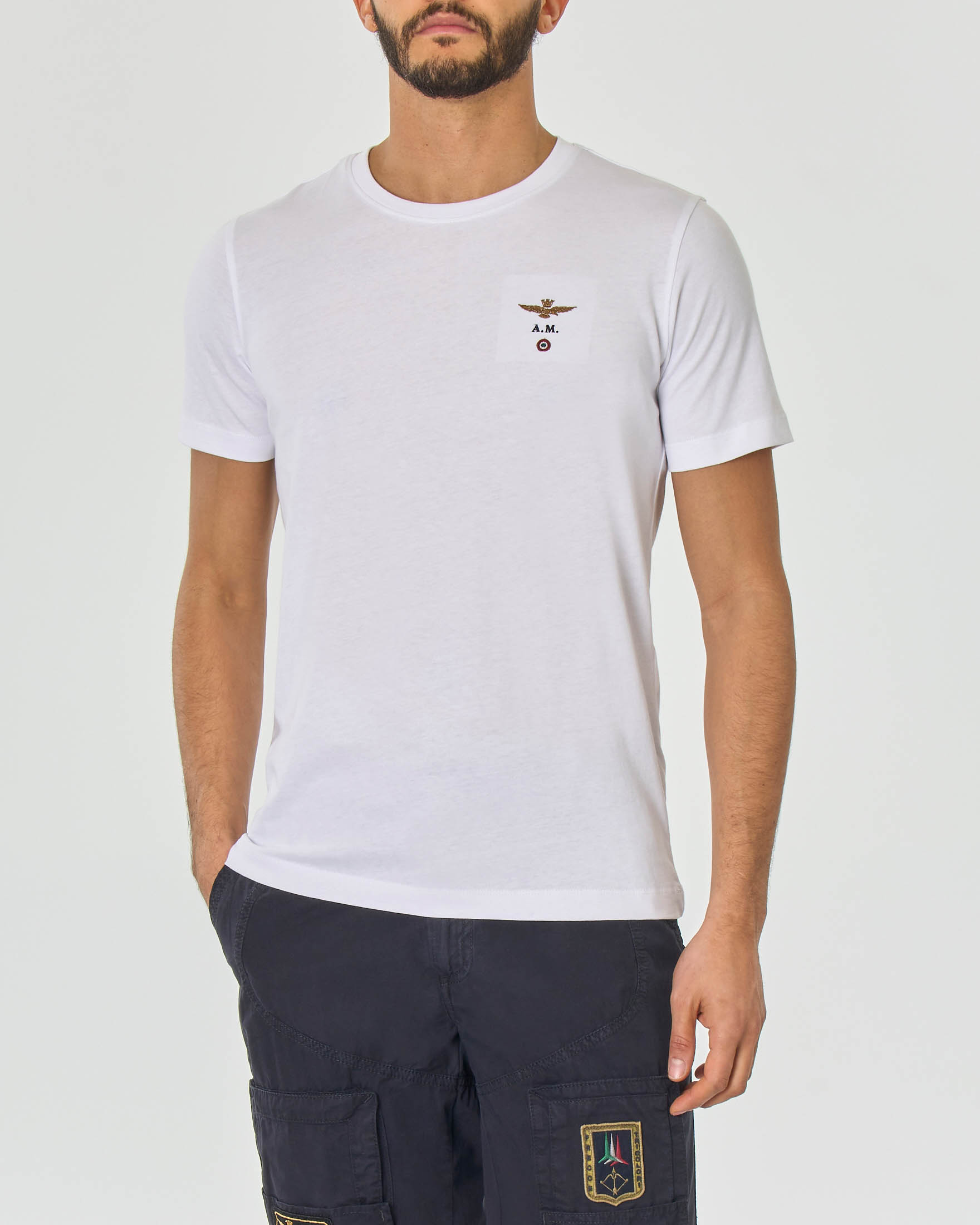 T-shirt mezza manica Aeronautica Militare bianca con logo piccolo ricamato