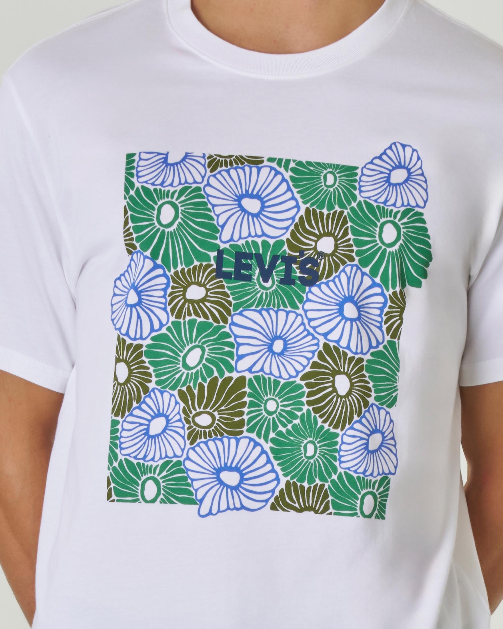 T-shirt mezza mancia in puro cotone dalla vestibilità over con logo catarifrangente piccolo sul petto e maxi sul retro.