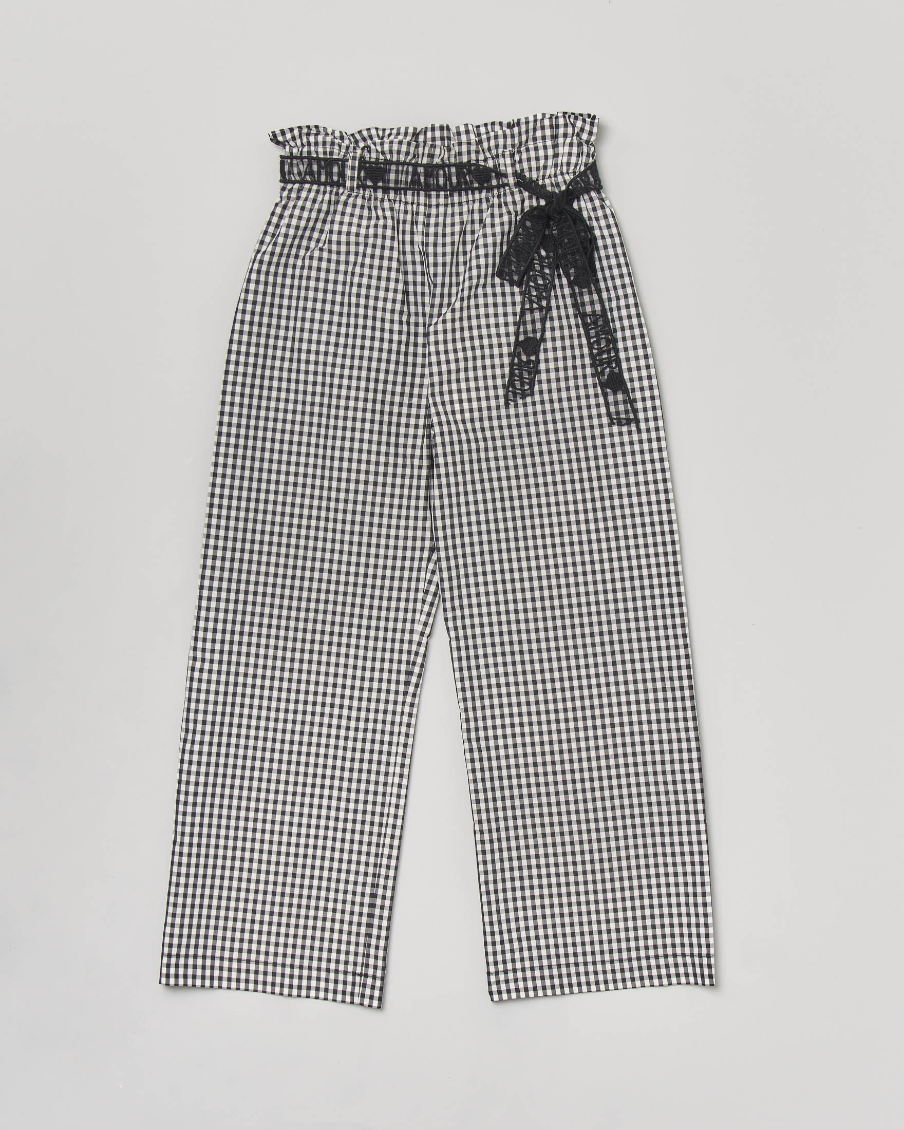 Pantaloni taffetà in fantasia vichy bianca e nera con cintura annodata a fiocco in vita 36-38