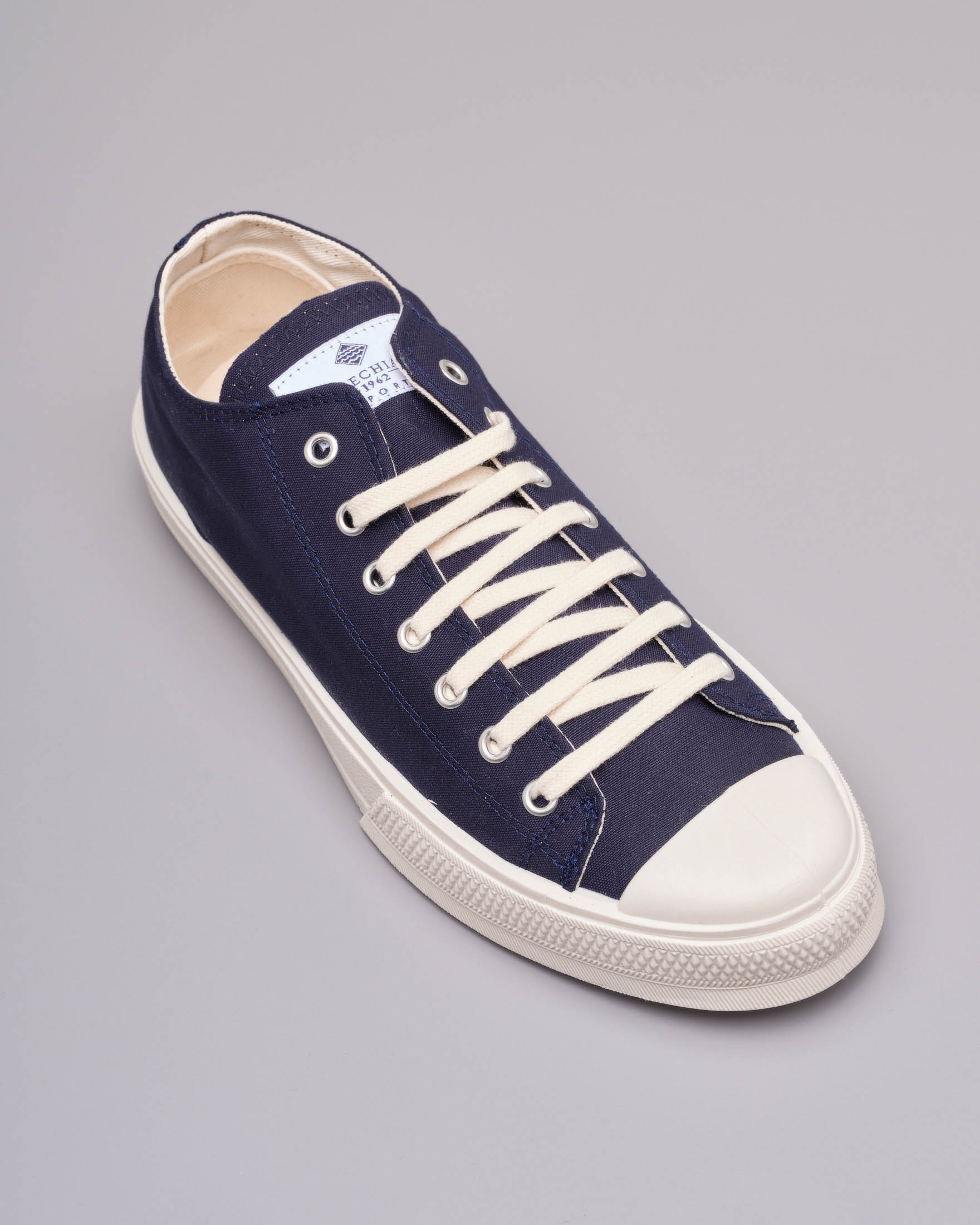 Sneakers basse in tela di cotone con suola in gomma, patch porta logo ricamato sulla linguetta.
