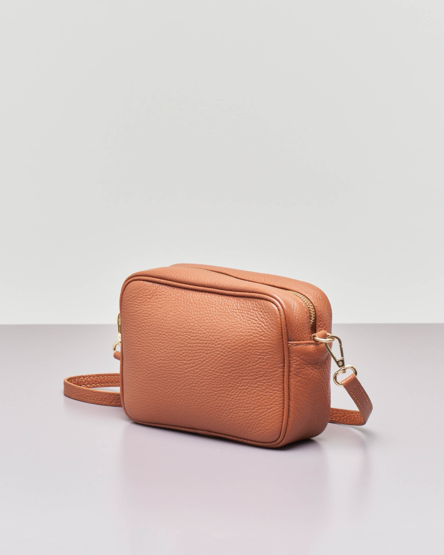 Cross bag in pelle color cuoio effetto martellato