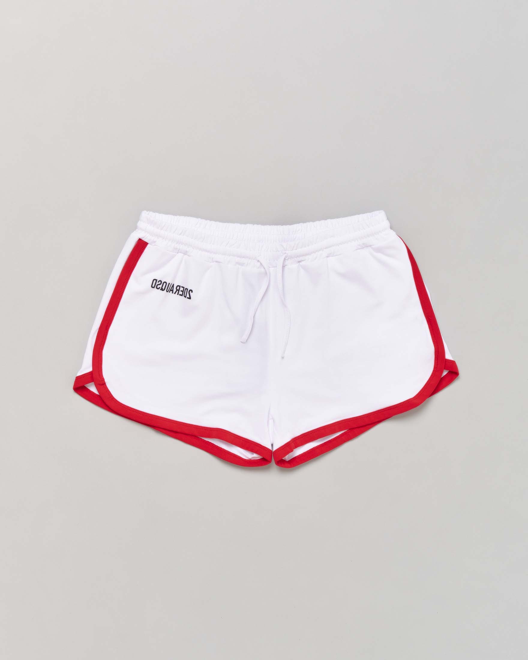 Short boxeur bianco in jersey di cotone strech con coulisse in vita e profili rossi 12-16 anni