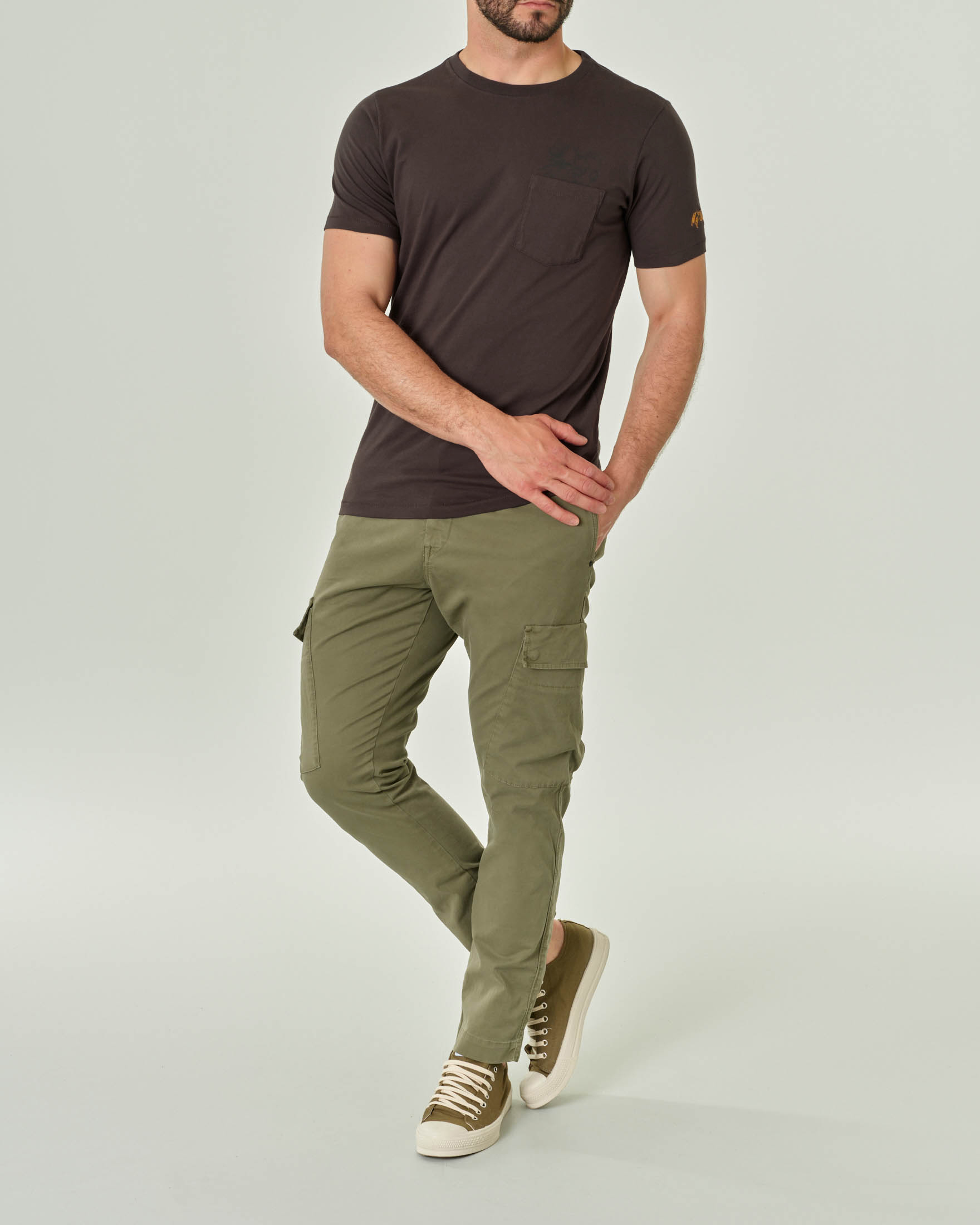 T-shirt mezza manica lavagna con taschino in pima cotton -51%