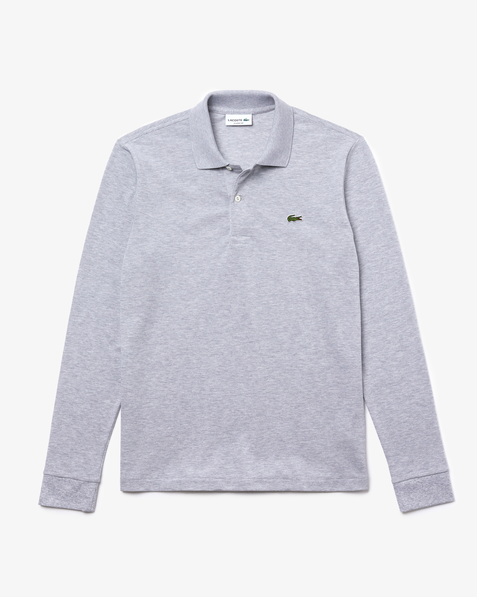 Polo grigio melange manica lunga classic fit L.13.13 in petit piqué chiné