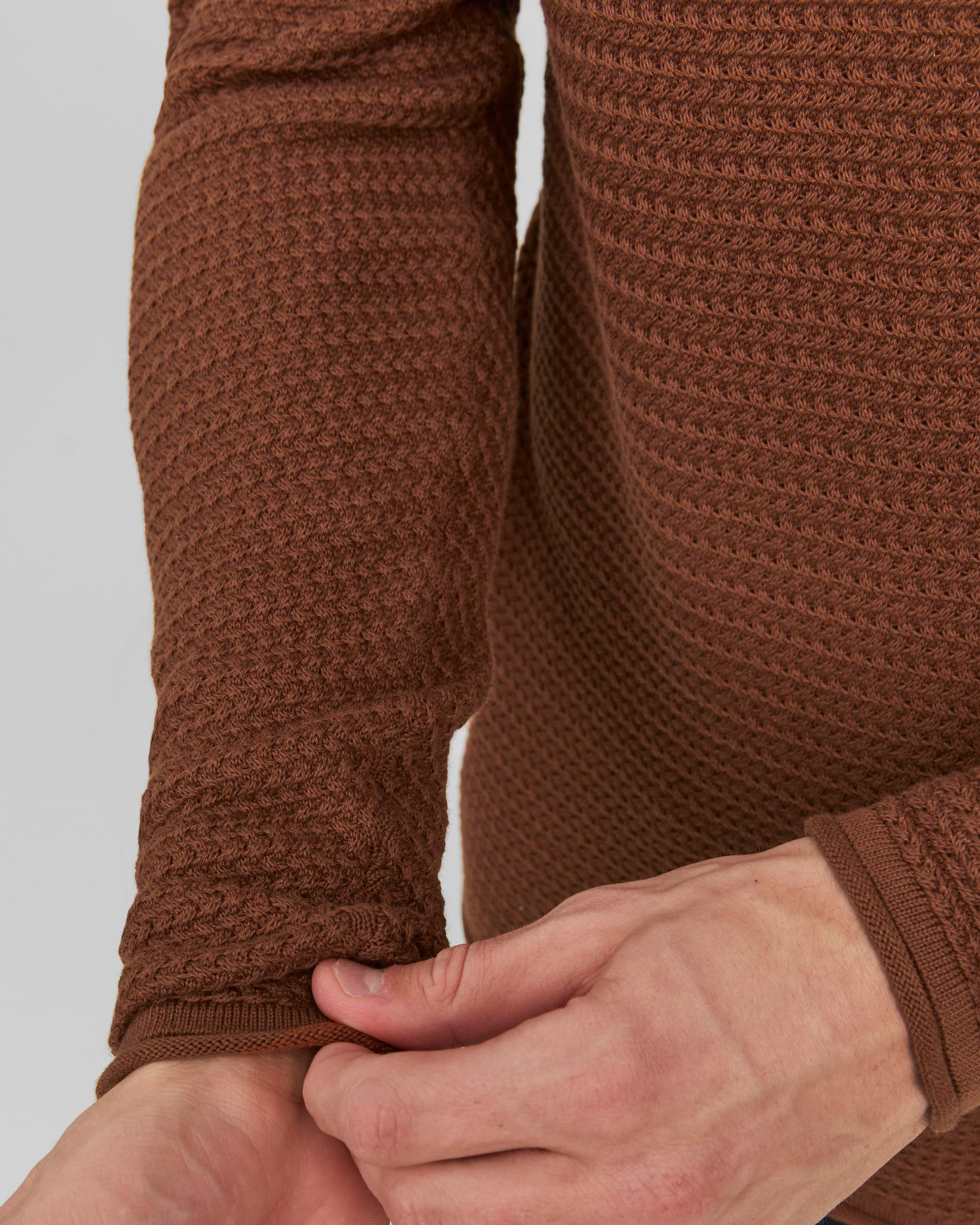 Maglia in puro cotone lavorato a punto pepe con scollo a giro e maniche raglan. Scollo, polsini e fondo rifiniti a costine con rullino. Patch porta logo applicato al fianco.