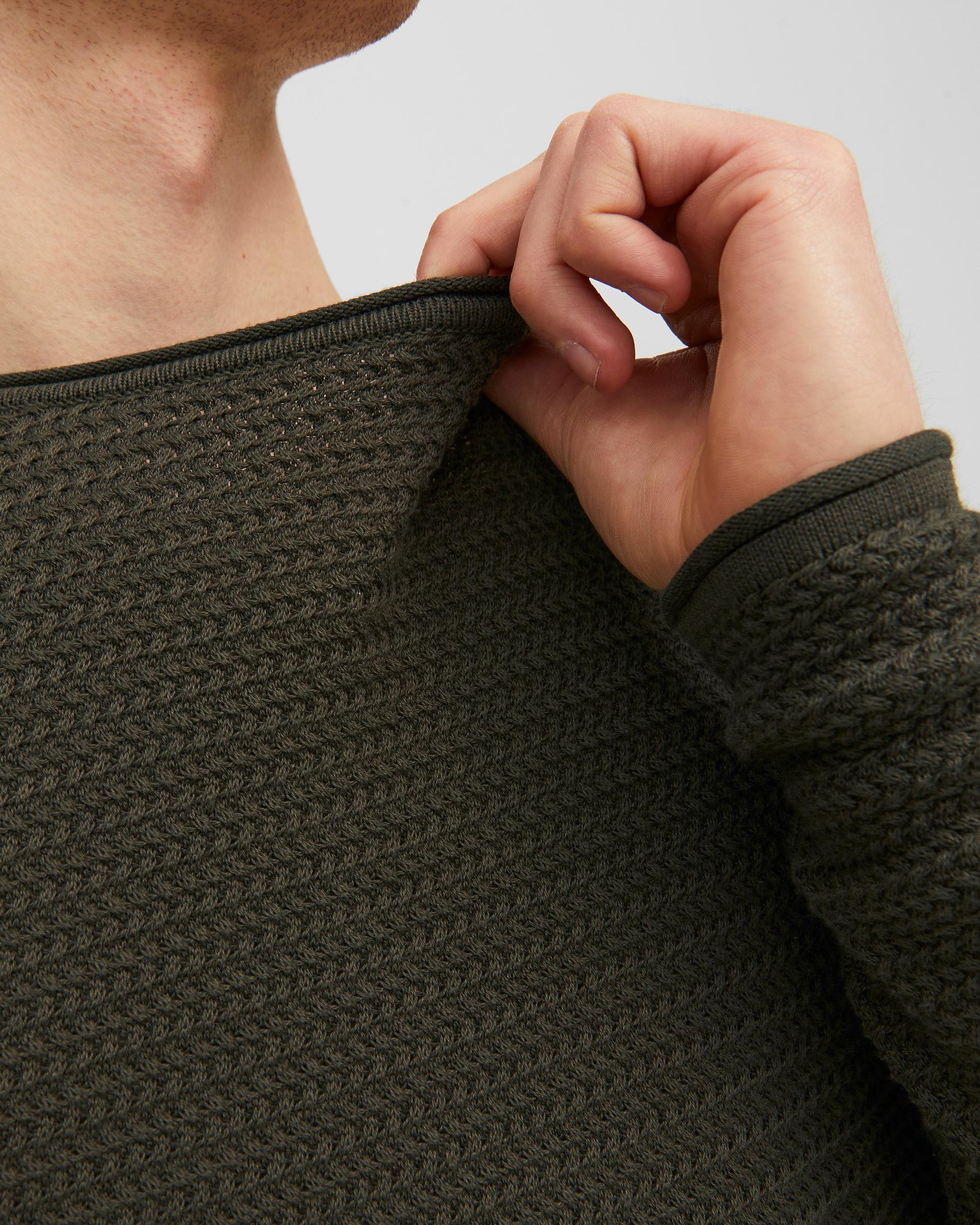 Maglia verde militare in cotone punto pepe con scollo a giro e maniche raglan