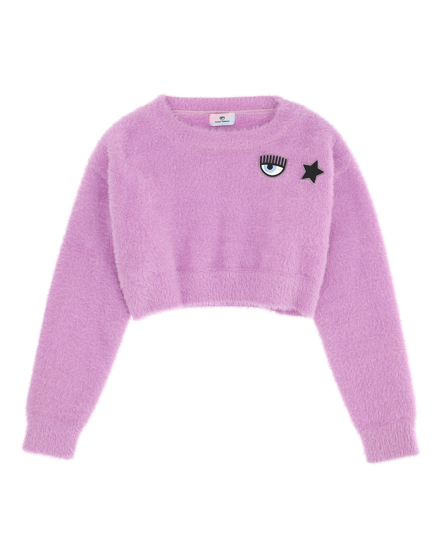 Maglia cropped lilla in tessuto effetto peluche con logo eyestar sul petto 8-10 anni