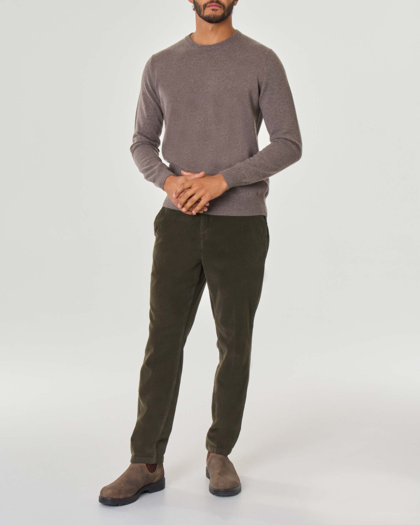 Maglia girocollo Pellizzari color fango in puro cachemire -20%