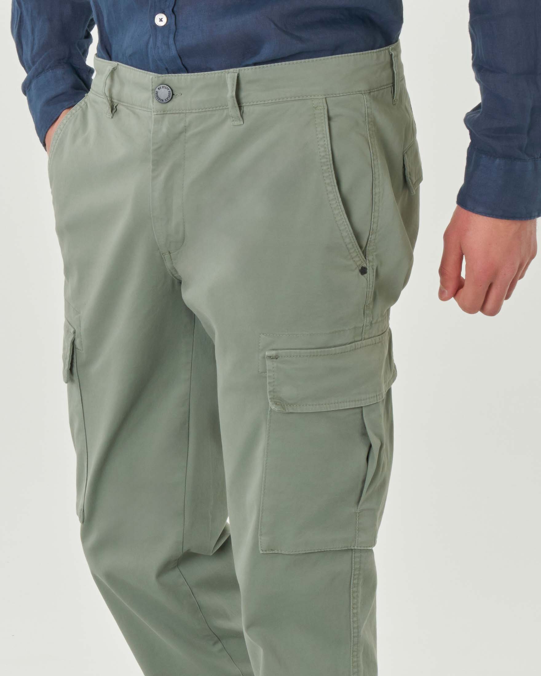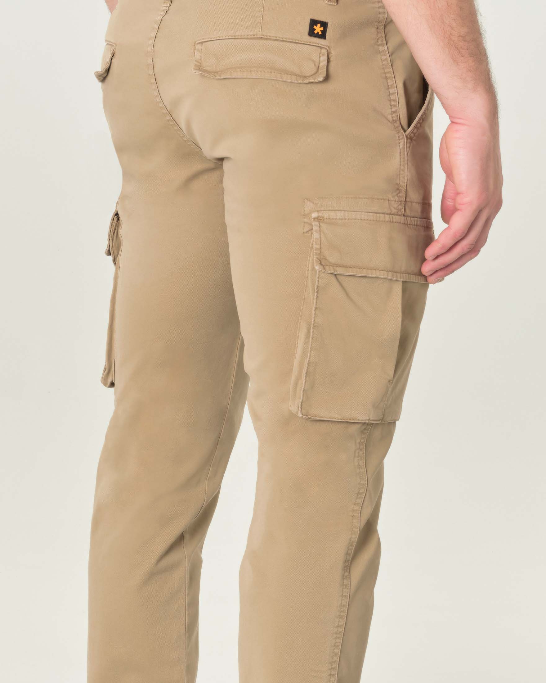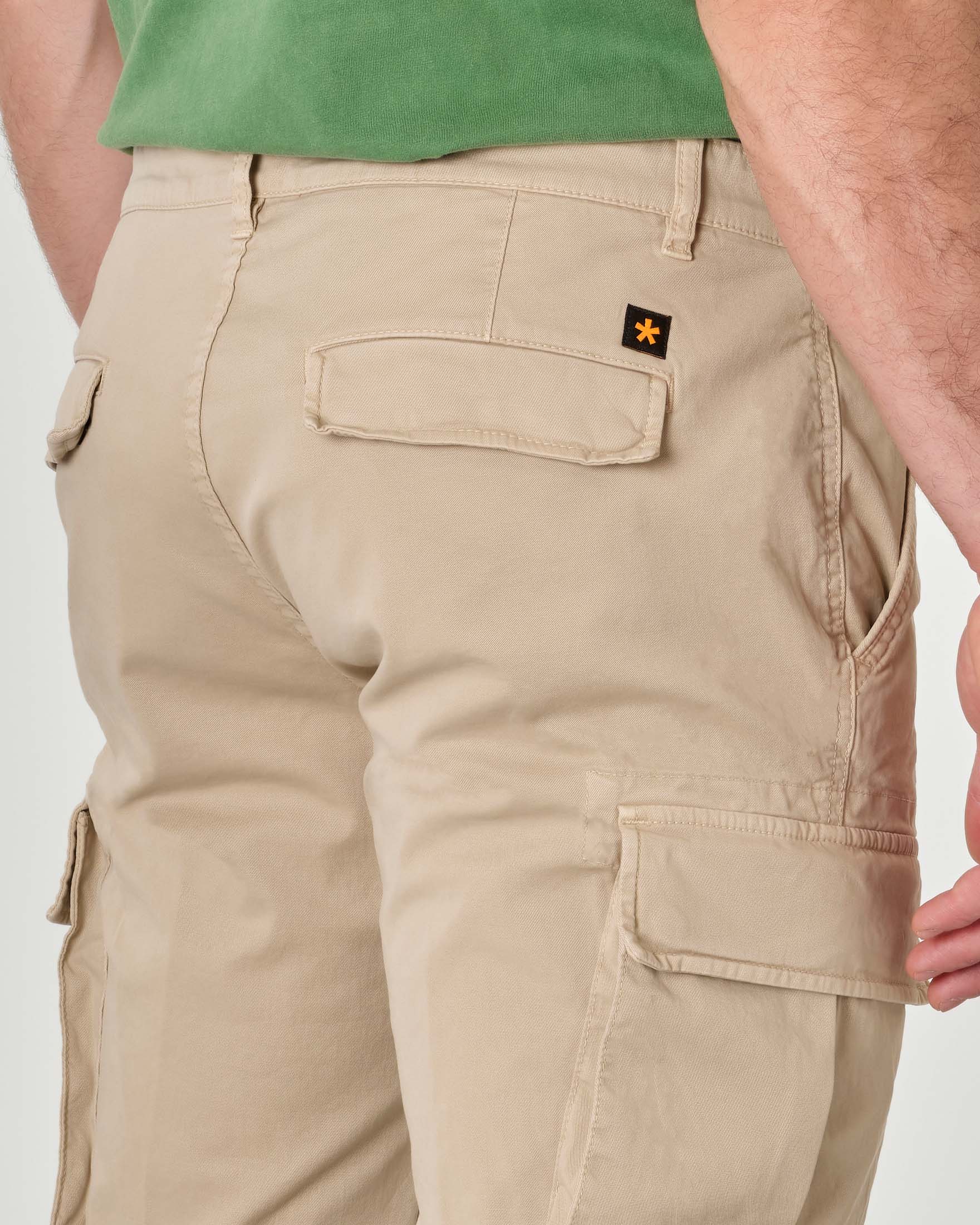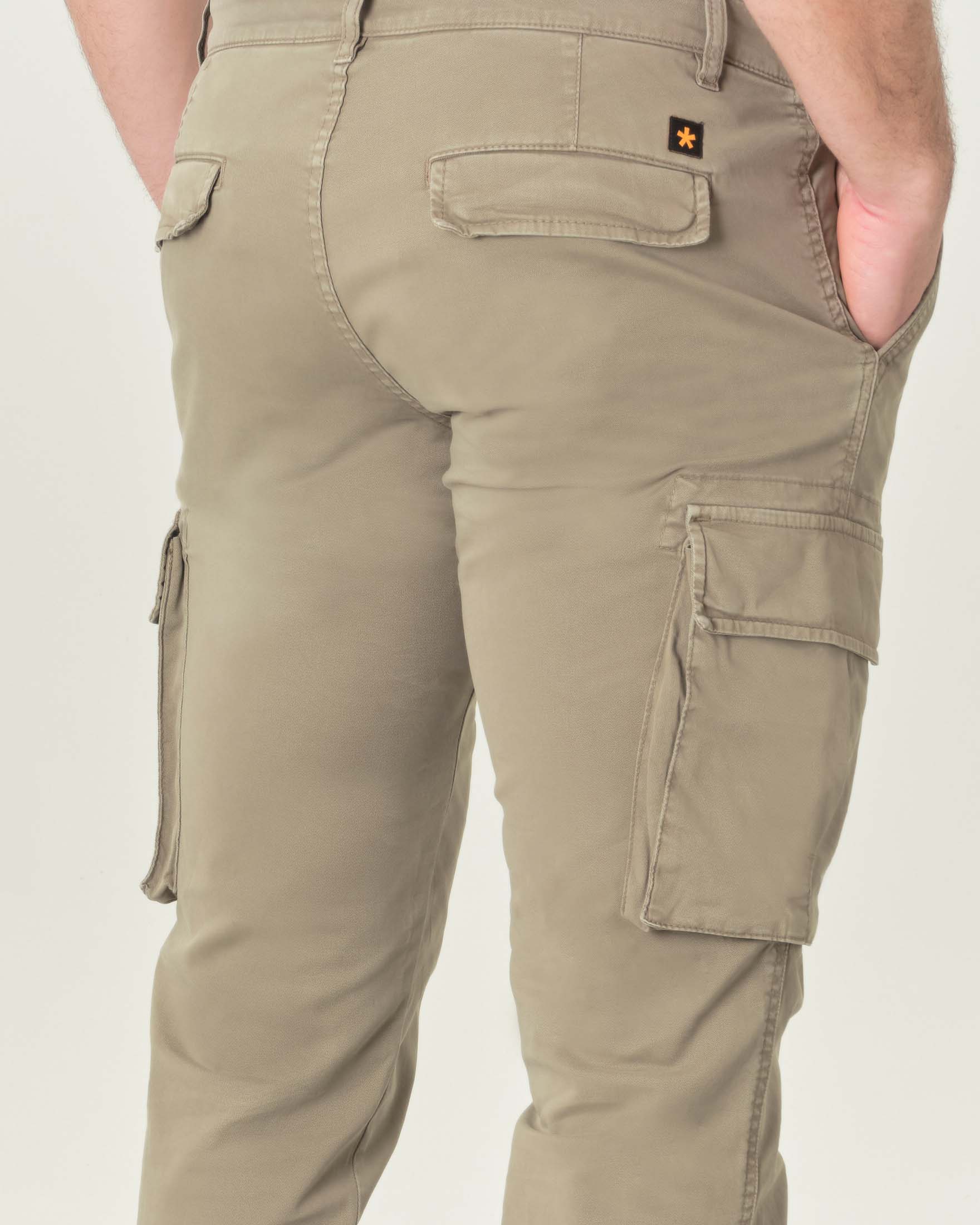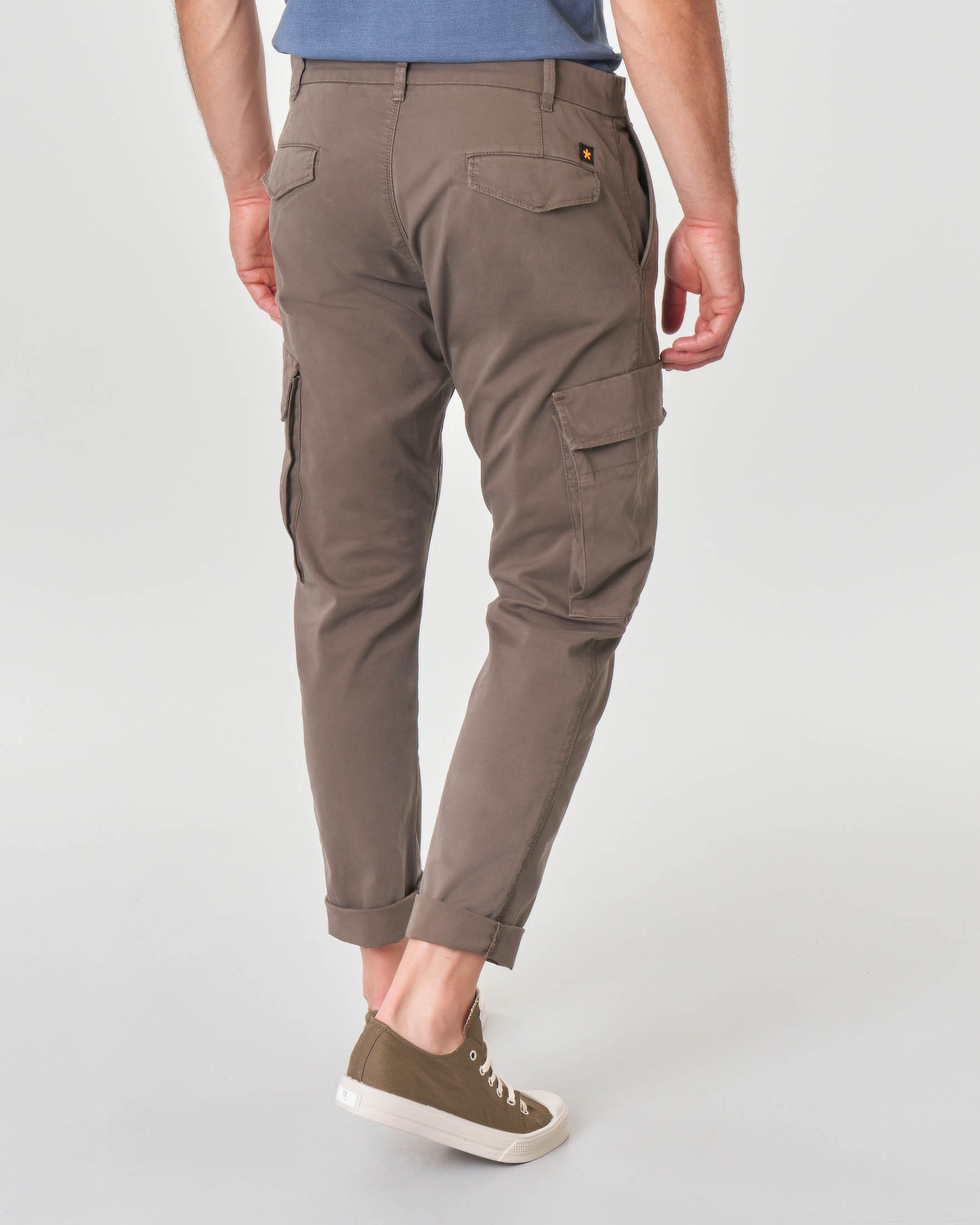 Pantalone cargo color fango in gabardina di cotone stretch -50%