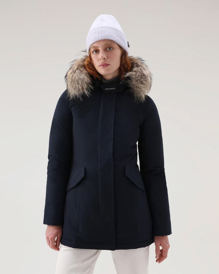 100% Poliestere Imbottitura: 70% Piumino d'anatra 30% Piuma Pelliccia: Procione