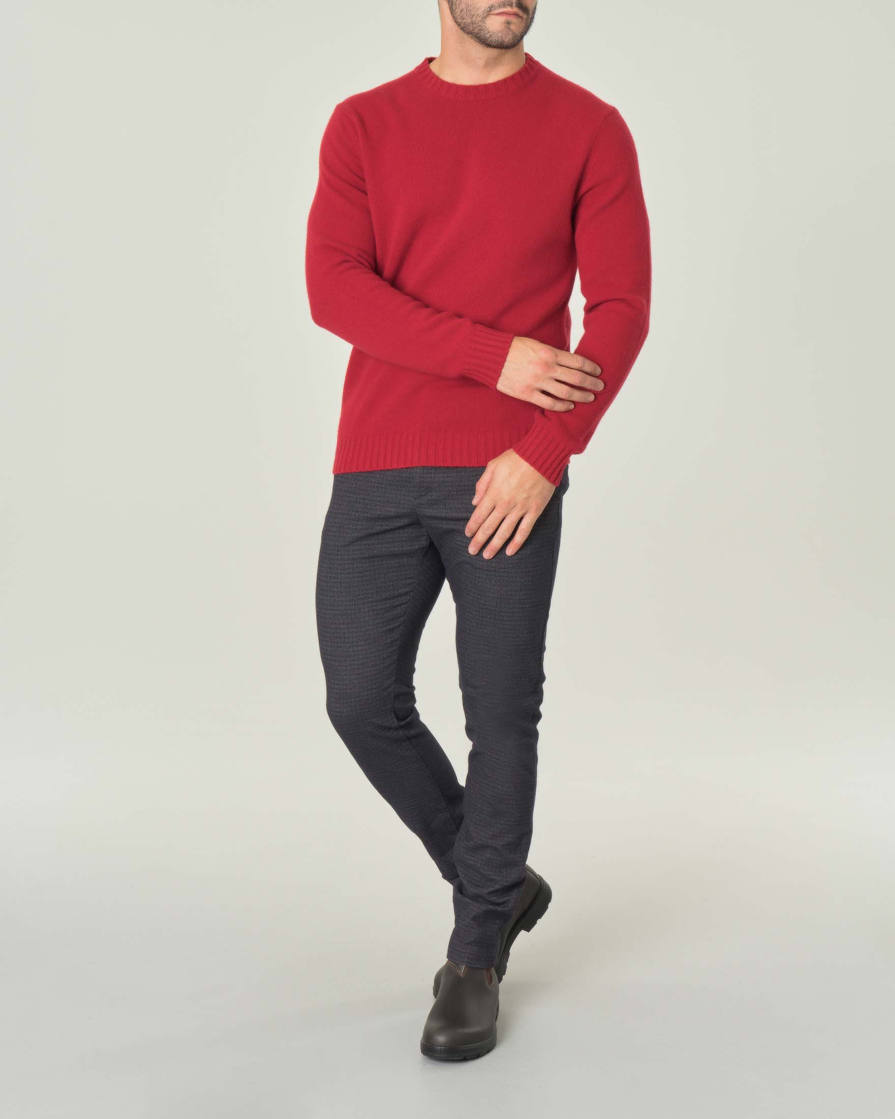 Maglione rosso girocollo in misto lana e cachemire finezza 7