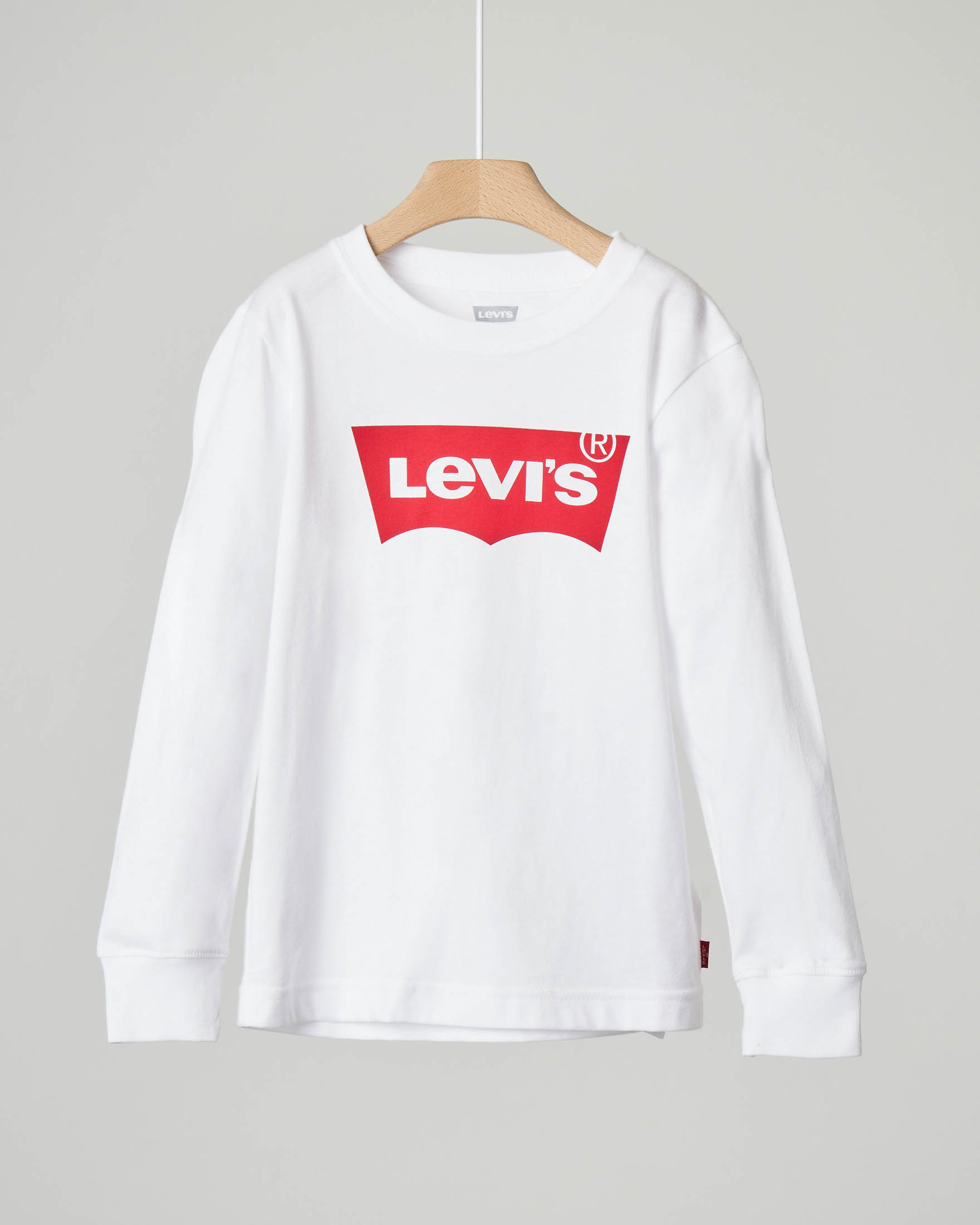 T-shirt Levi's bianca manica lunga con logo batwing rosso