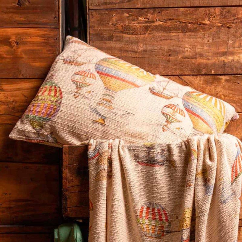 Federa per cuscino Telinus in cotone avorio a stampa Flyby a mongolfieri multicolore -30%