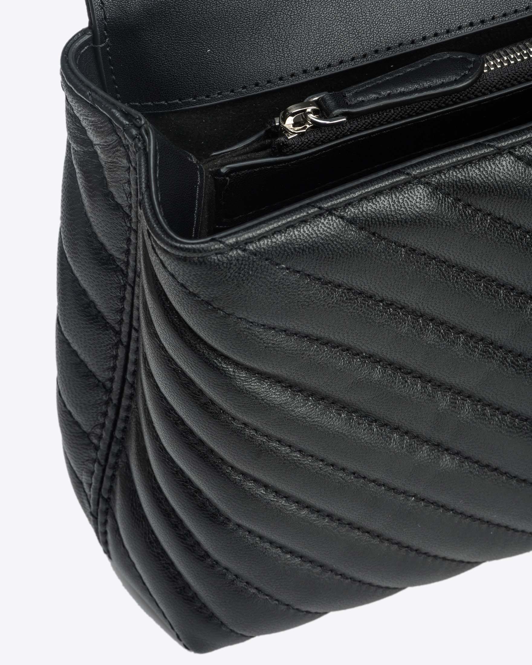 Maxi Love Bag Puff in pelle con trapuntatura obliqua. Chiusura a incastro con fibbia logo in metallo e gancio a scomparsa sotto la patta. Fodera interna in microfibra. Interno con tasca tramezza con cerniera e tasca a parete. Tracolla a catena a scorrimento con spallaccio in pelle abbinato. Misure 32 x 11 x 24 cm.