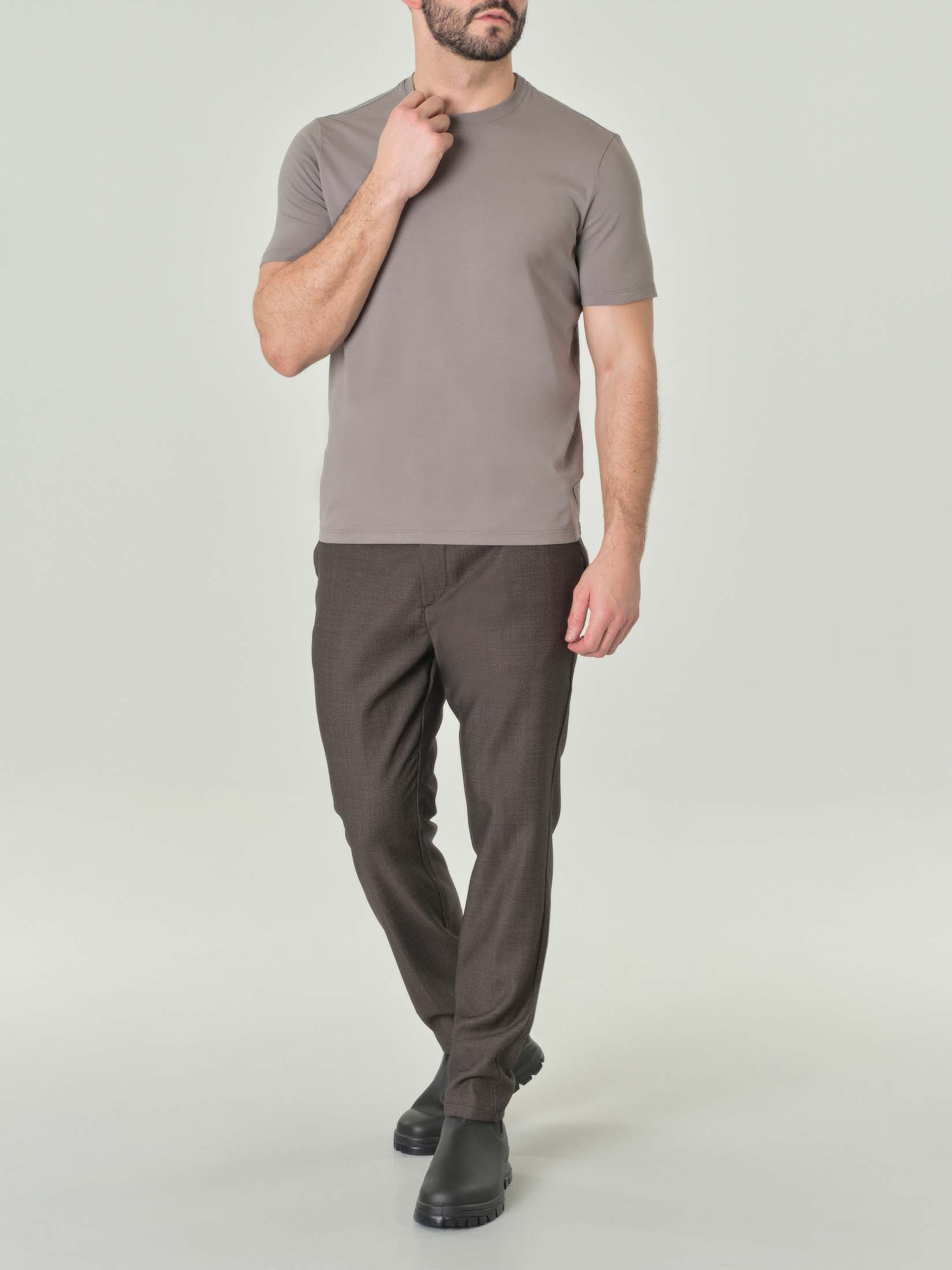 T-shirt color fango in jersey di puro cotone a tinta unita