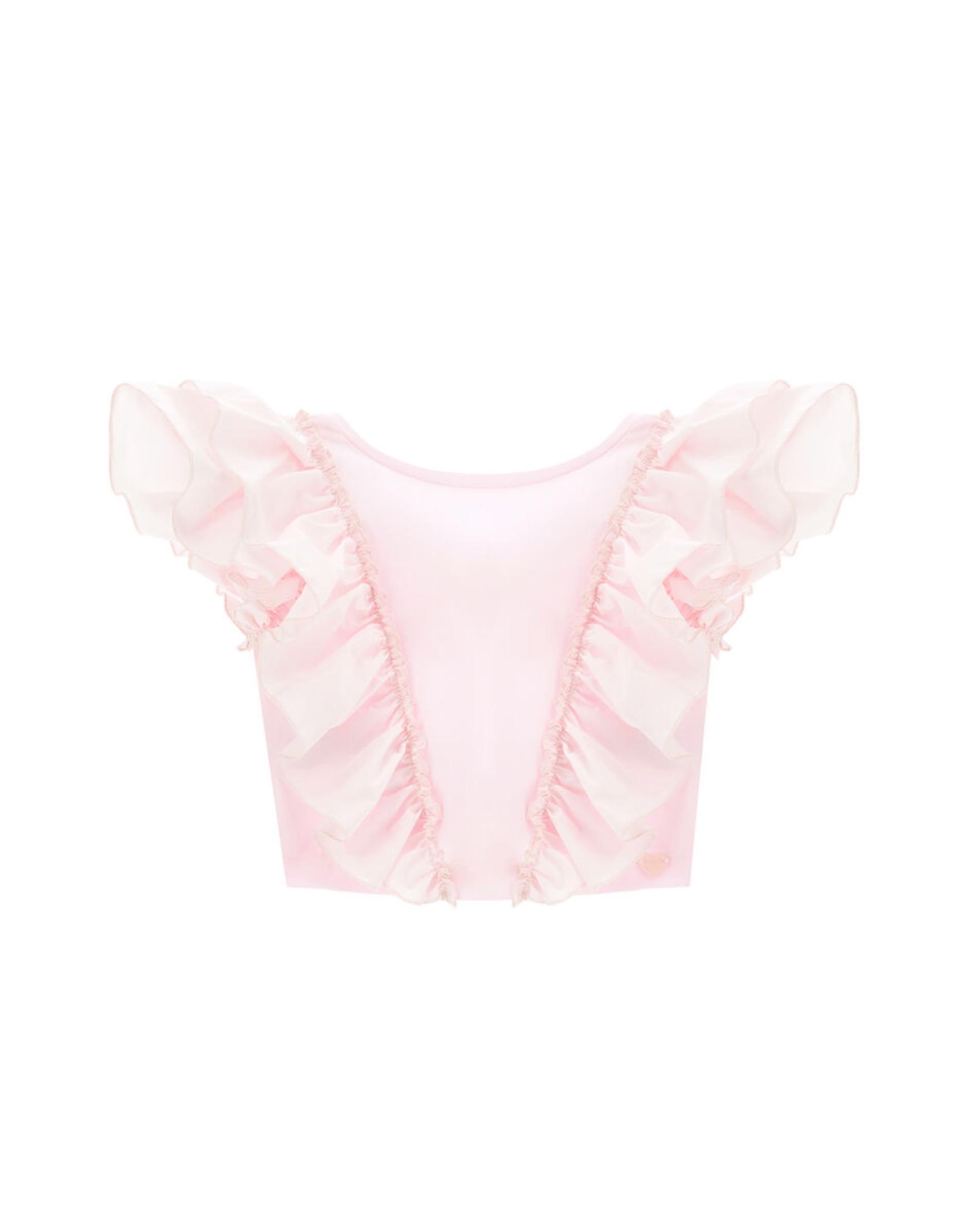 Top corto rosa in popeline con rouches verticali e maniche ad aletta 6-12 anni