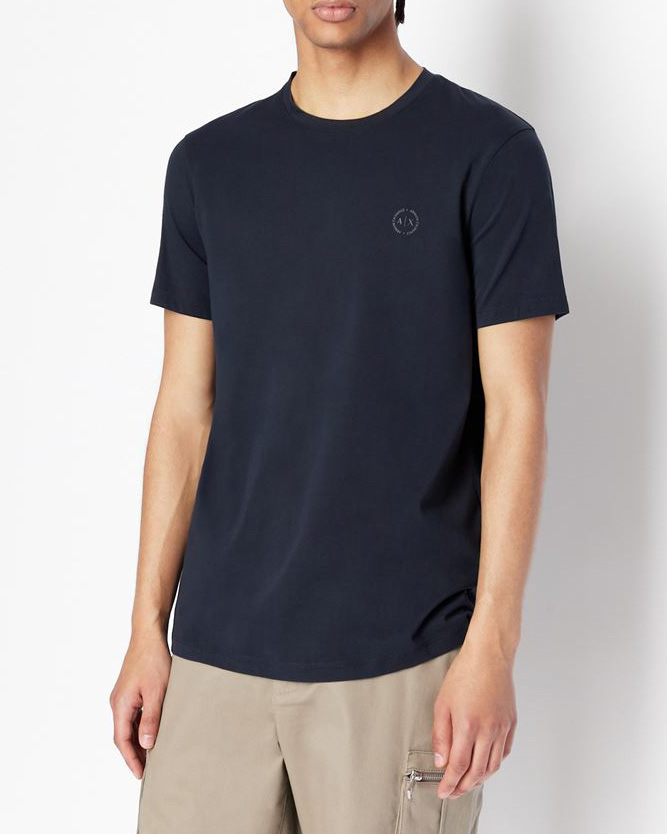 T-shirt blu a mezza manica tinta unita con logo piccolo ricamato sul petto -30%
