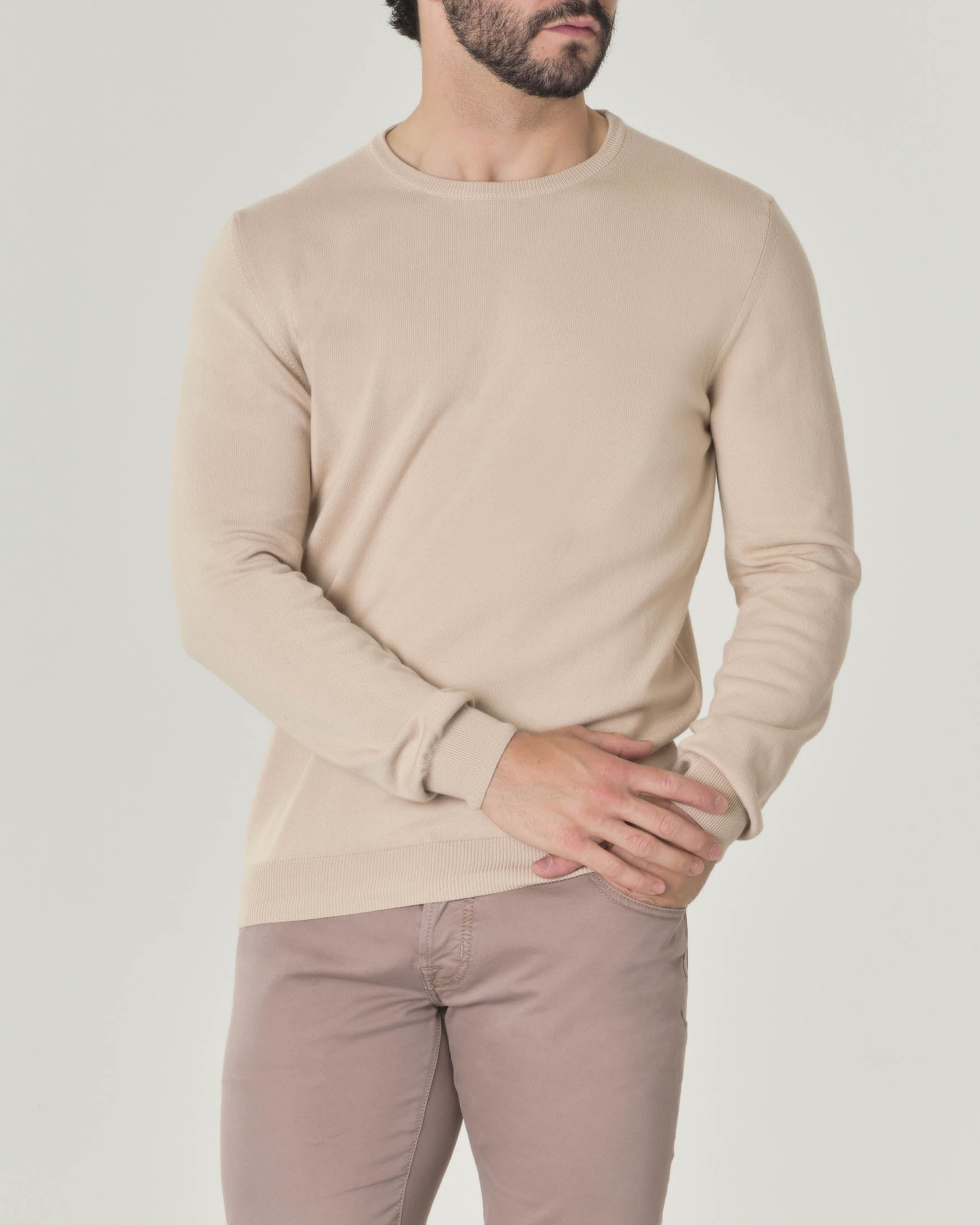 Maglia girocollo color sabbia in puro cotone made in Italy