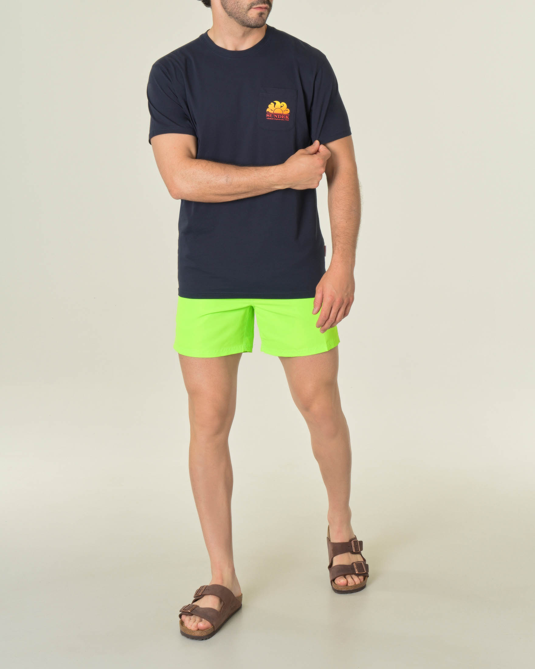 T-shirt blu mezza manica con taschino logo sole sul petto e maxi sul retro -20%