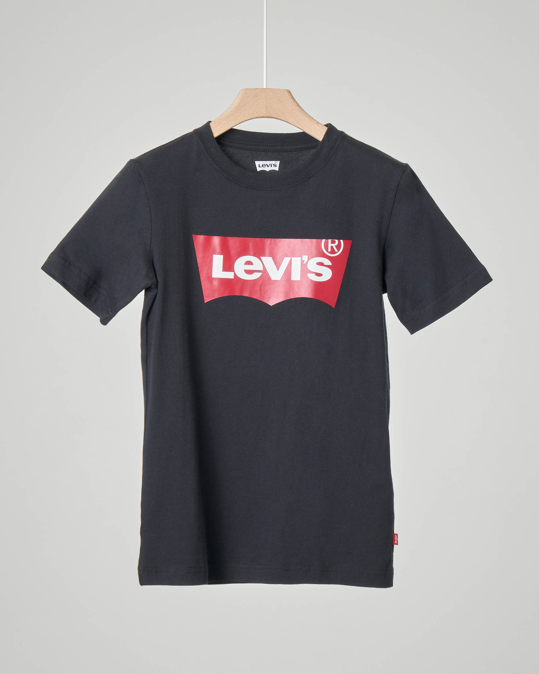 T-shirt Levi's nera mezza manica con logo batwing rosso
