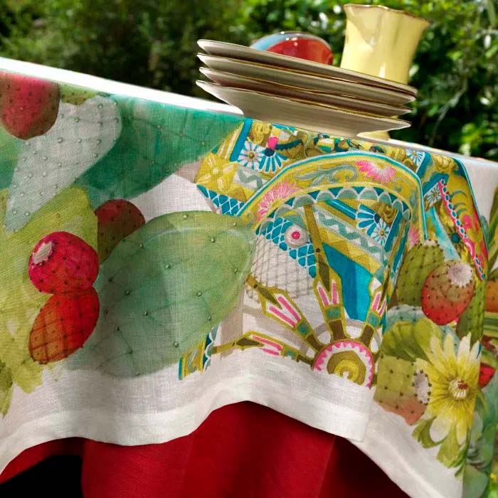 Tovaglia rettangolare Mediterraneo in lino a fantasia stampata fichi d'india multicolor 170x270