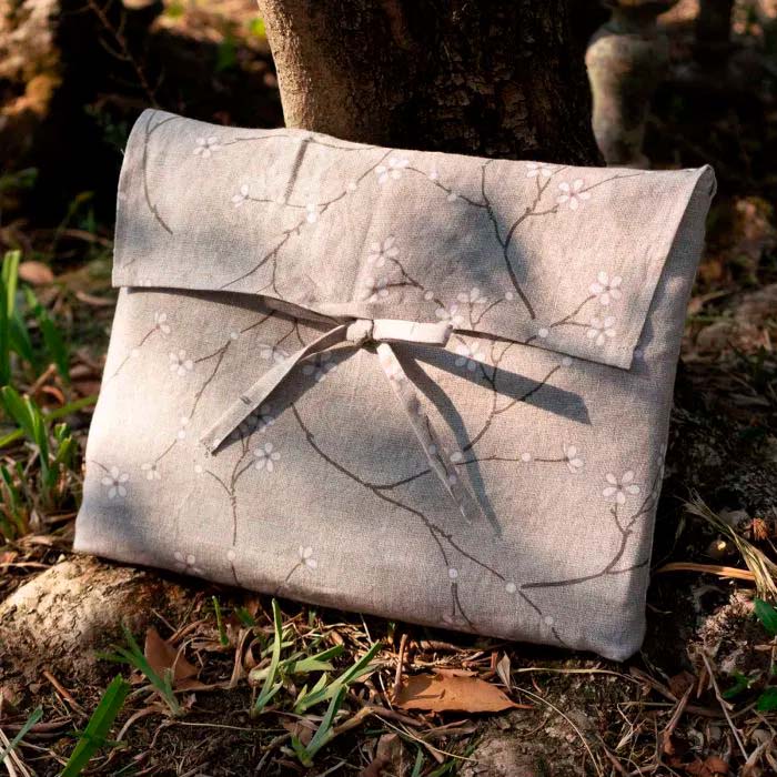 Tovaglia rettangolare Tofuku in canapa a fantasia ramoscello in fiore 170x270