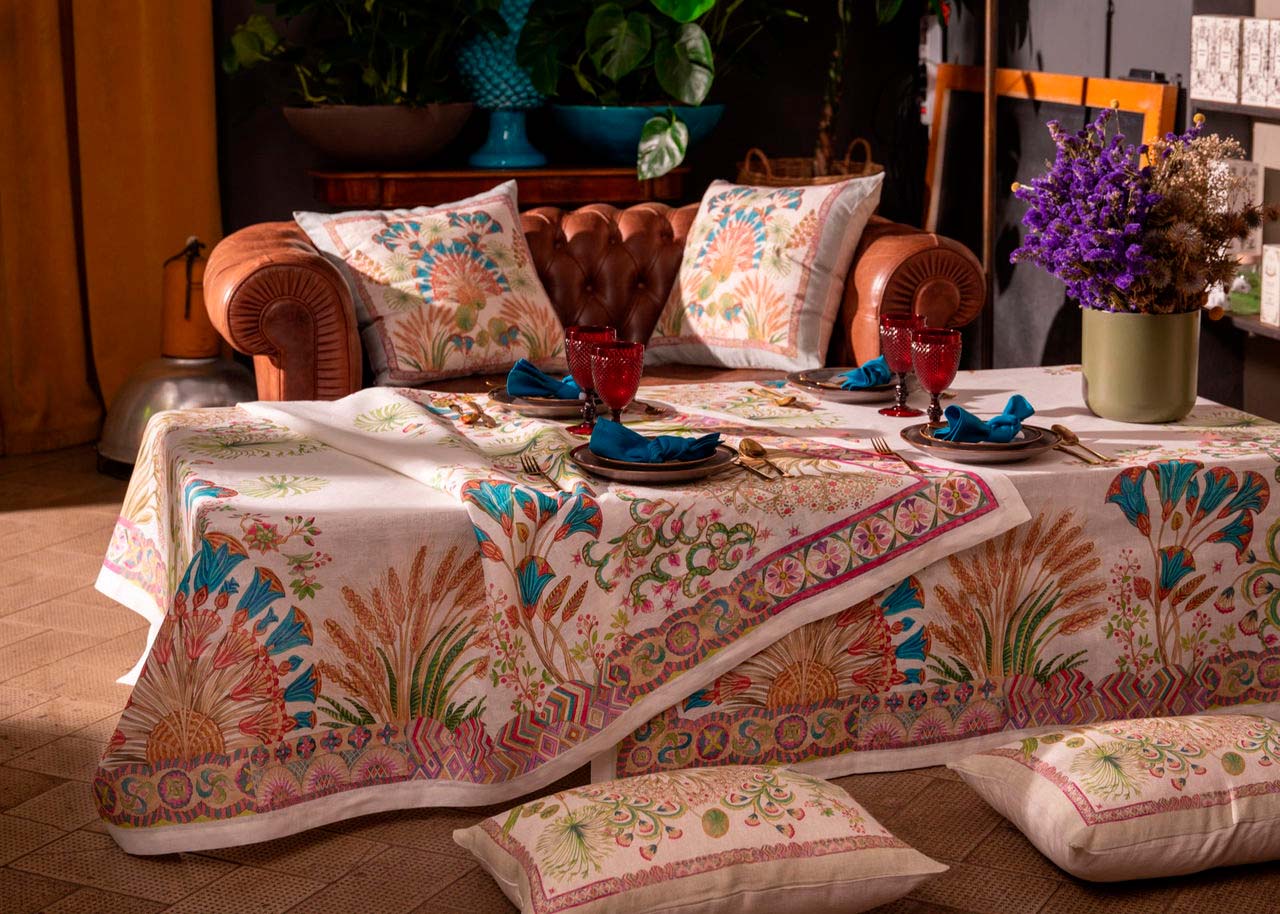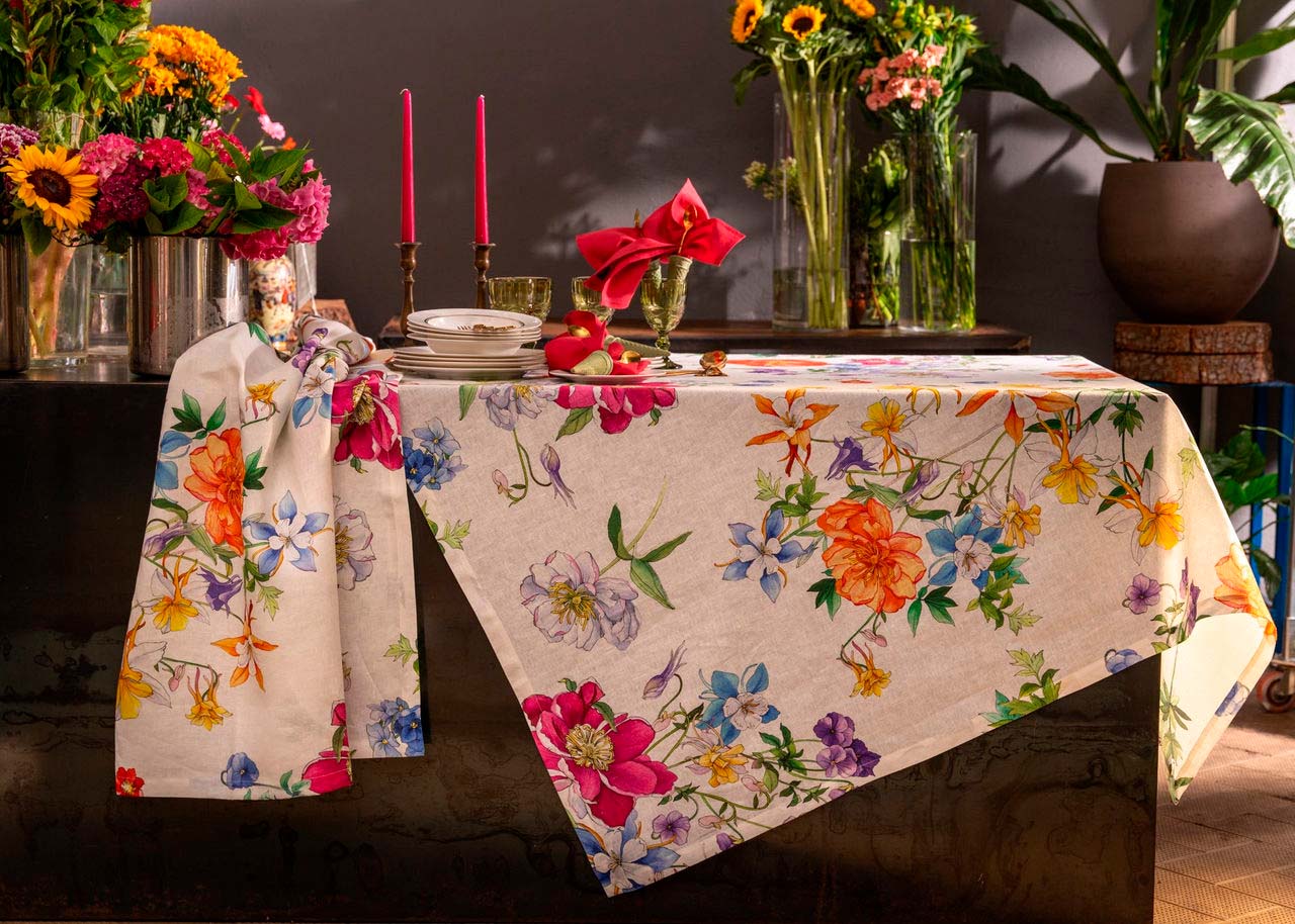 Tovaglia quadrata Semiramide in lino a fantasia floreale multicolor 170x170