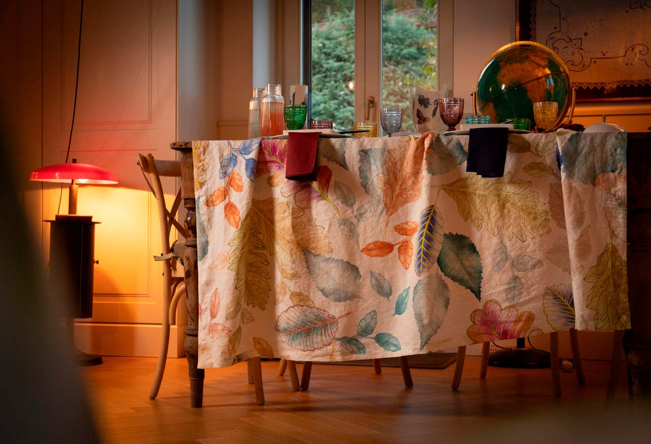 Tovaglia rettangolare Foliage in canapa a fantasia fogliame multicolor 160x231
