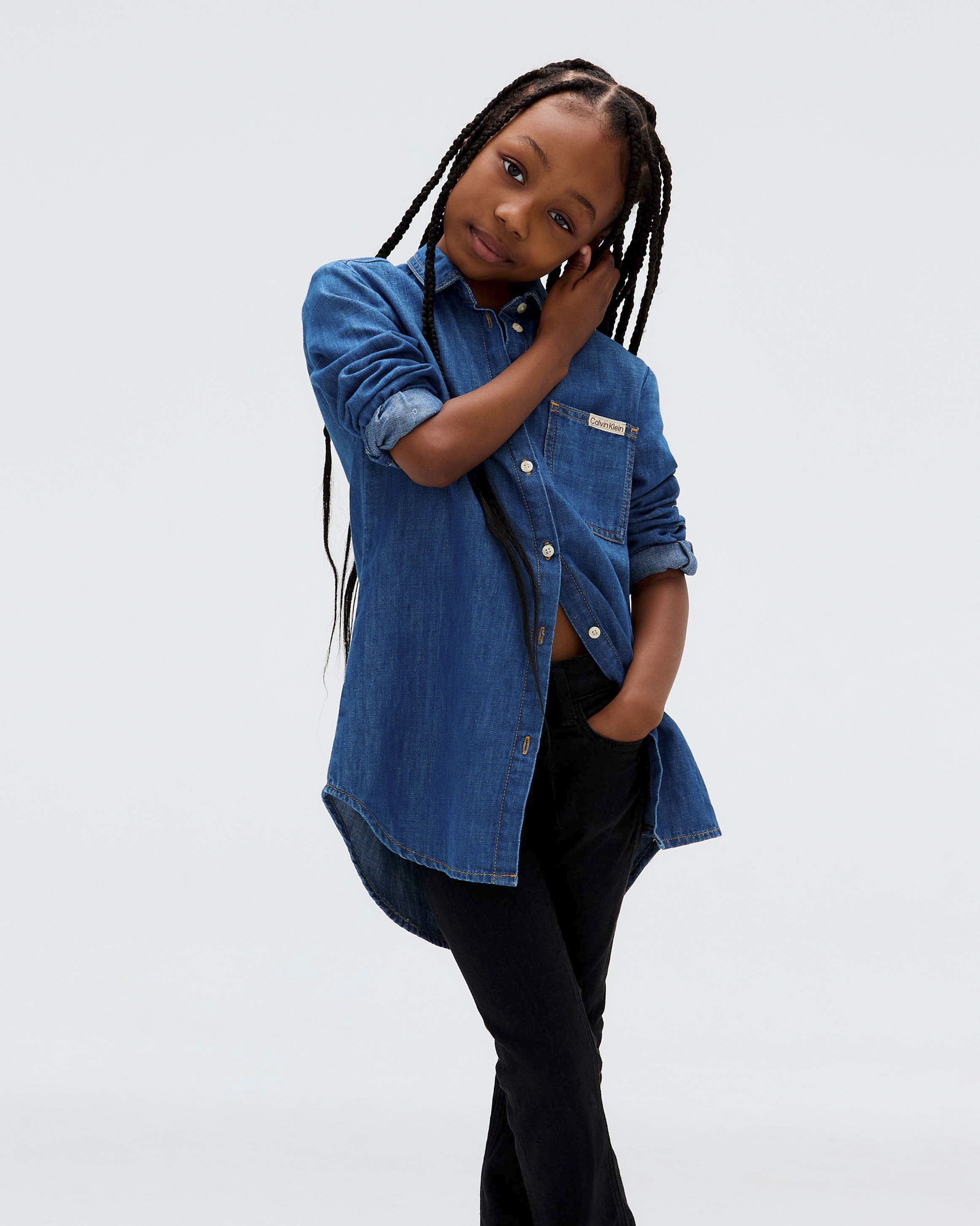 Jeans flare Calvin Klein in cotone stretch lavaggio scuro stone washed
