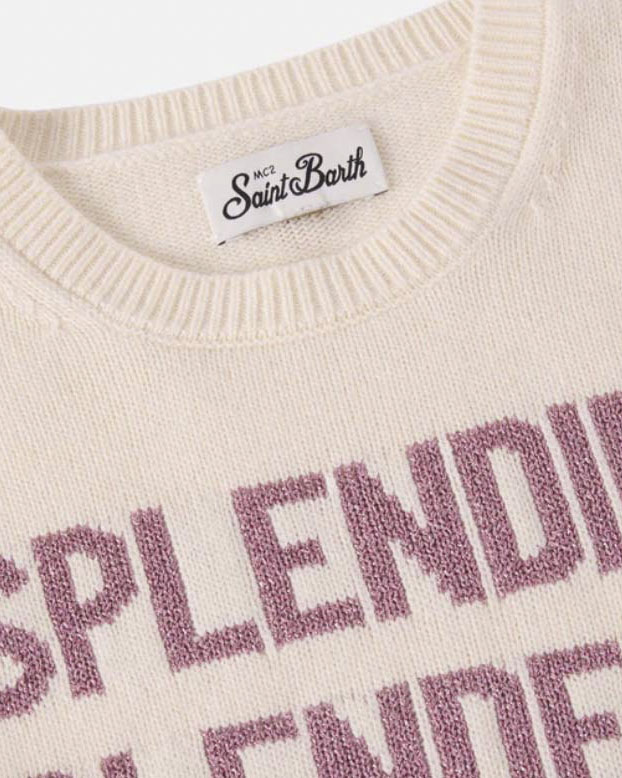 Maglia panna MC2 Saint Barth in misto lana e cashmere con scritta 'Splendida Splendente'