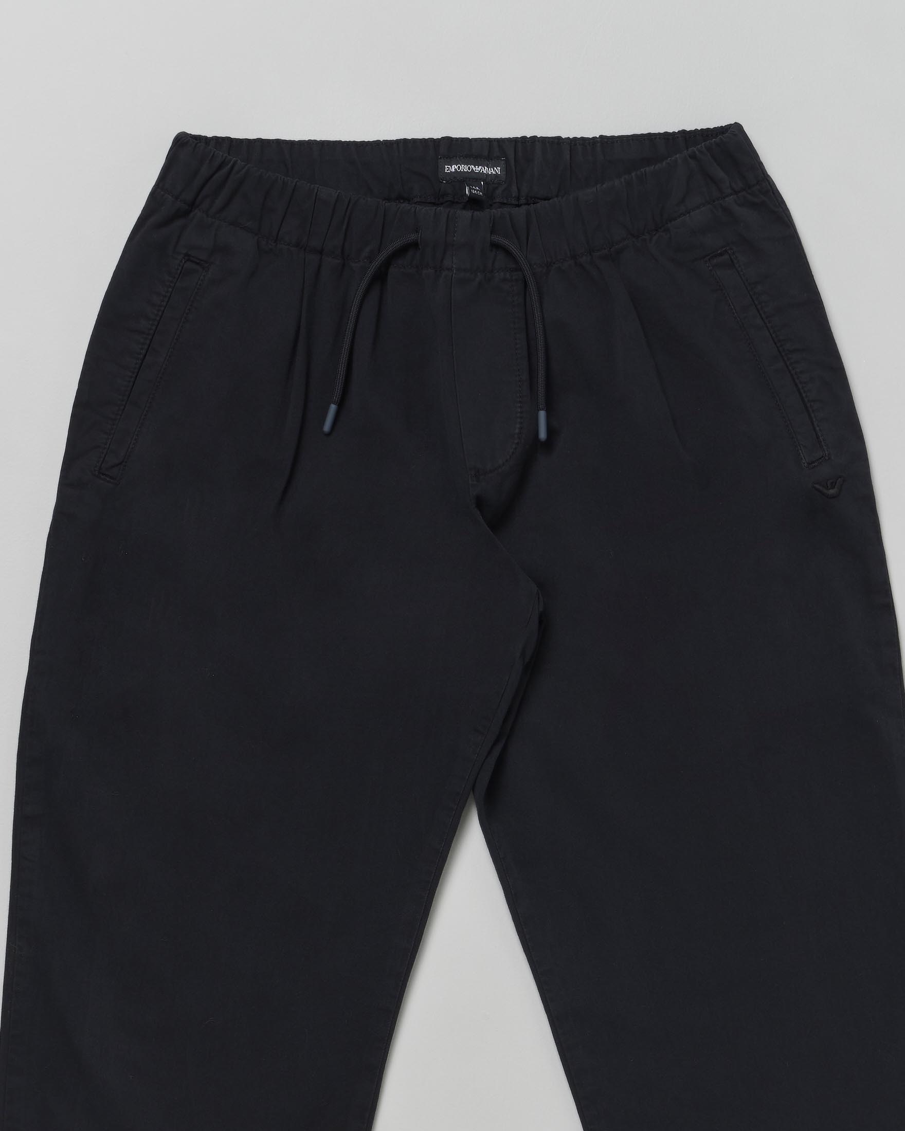 Pantaloni Emporio Armani carrot fit blu in cotone con coulisse