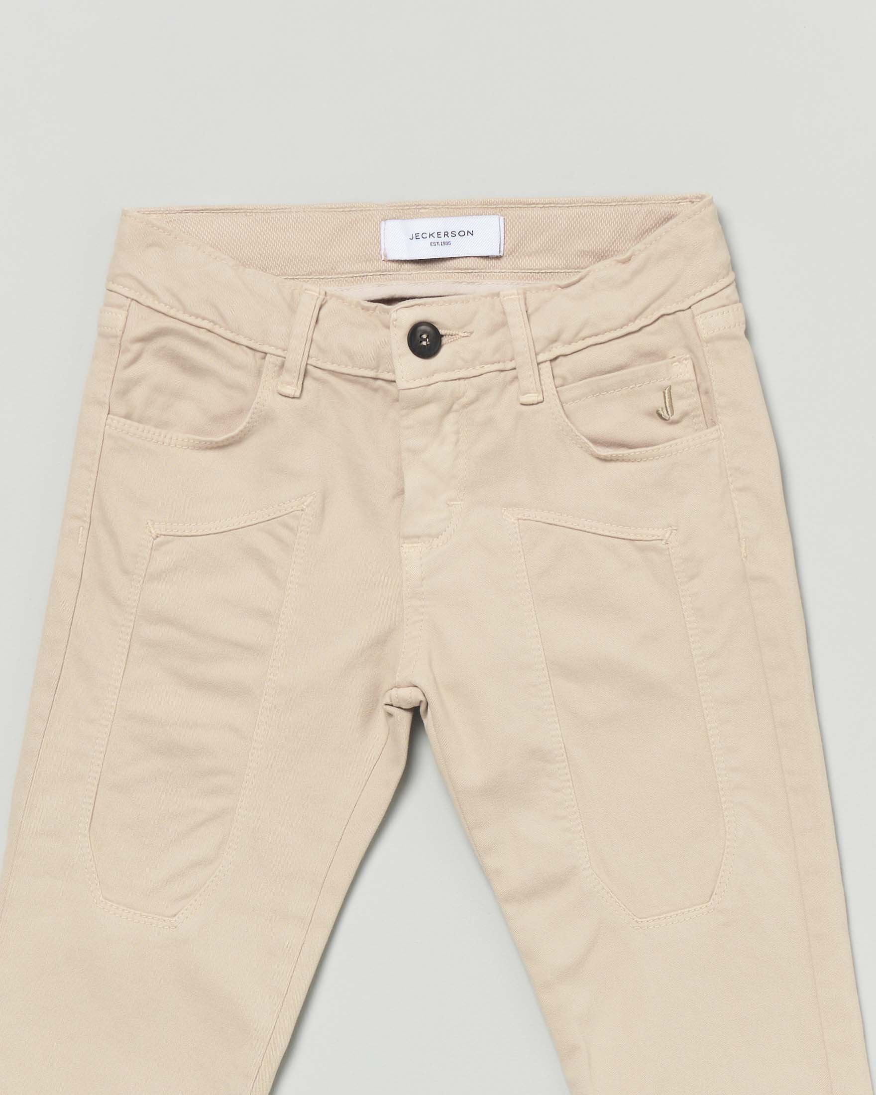 Jeans slim Jeckerson in puro cotone color sabbia con toppa icon