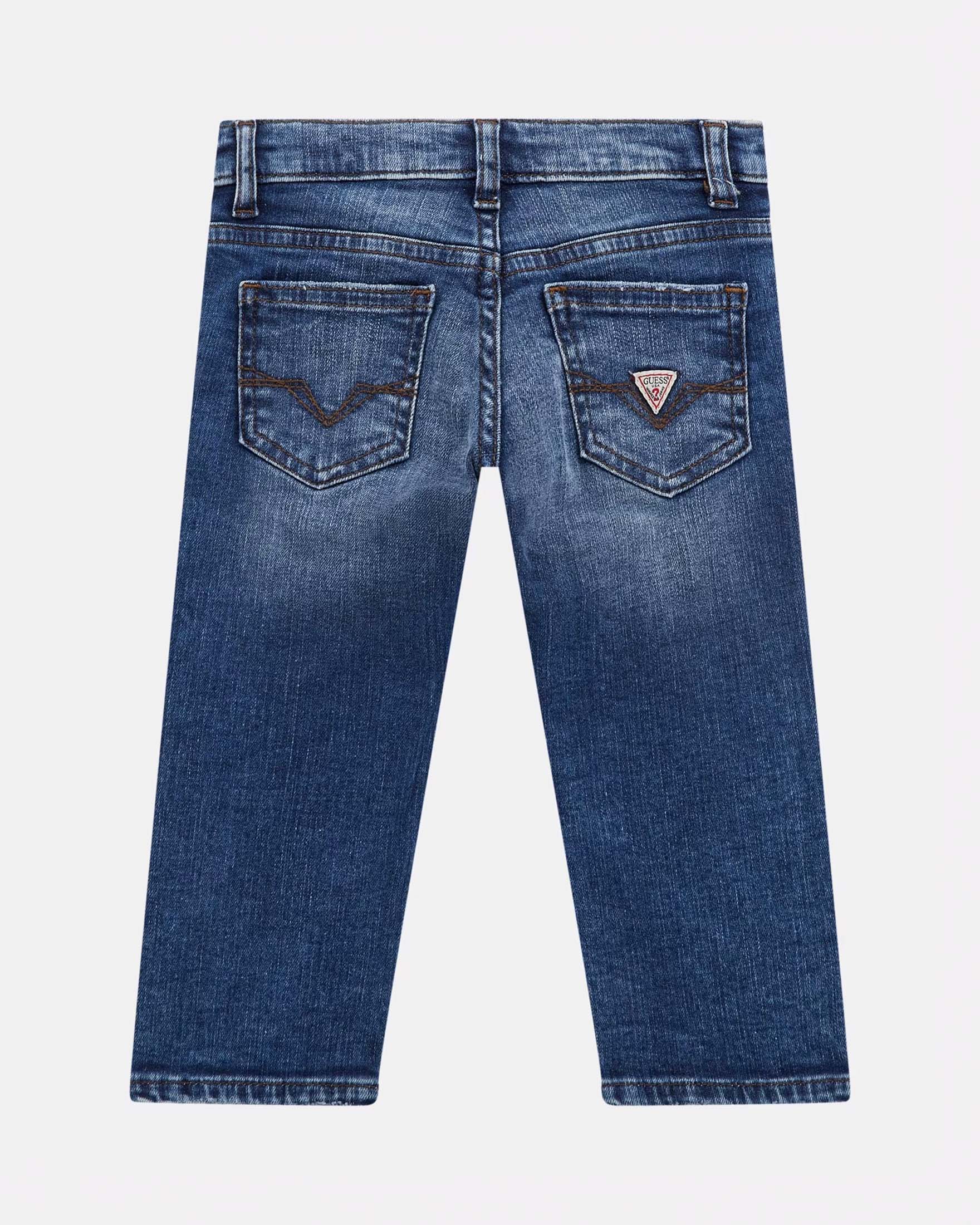 Jeans a lavaggio medio con schiariture ed elastico inserito in vita 6-18 mesi