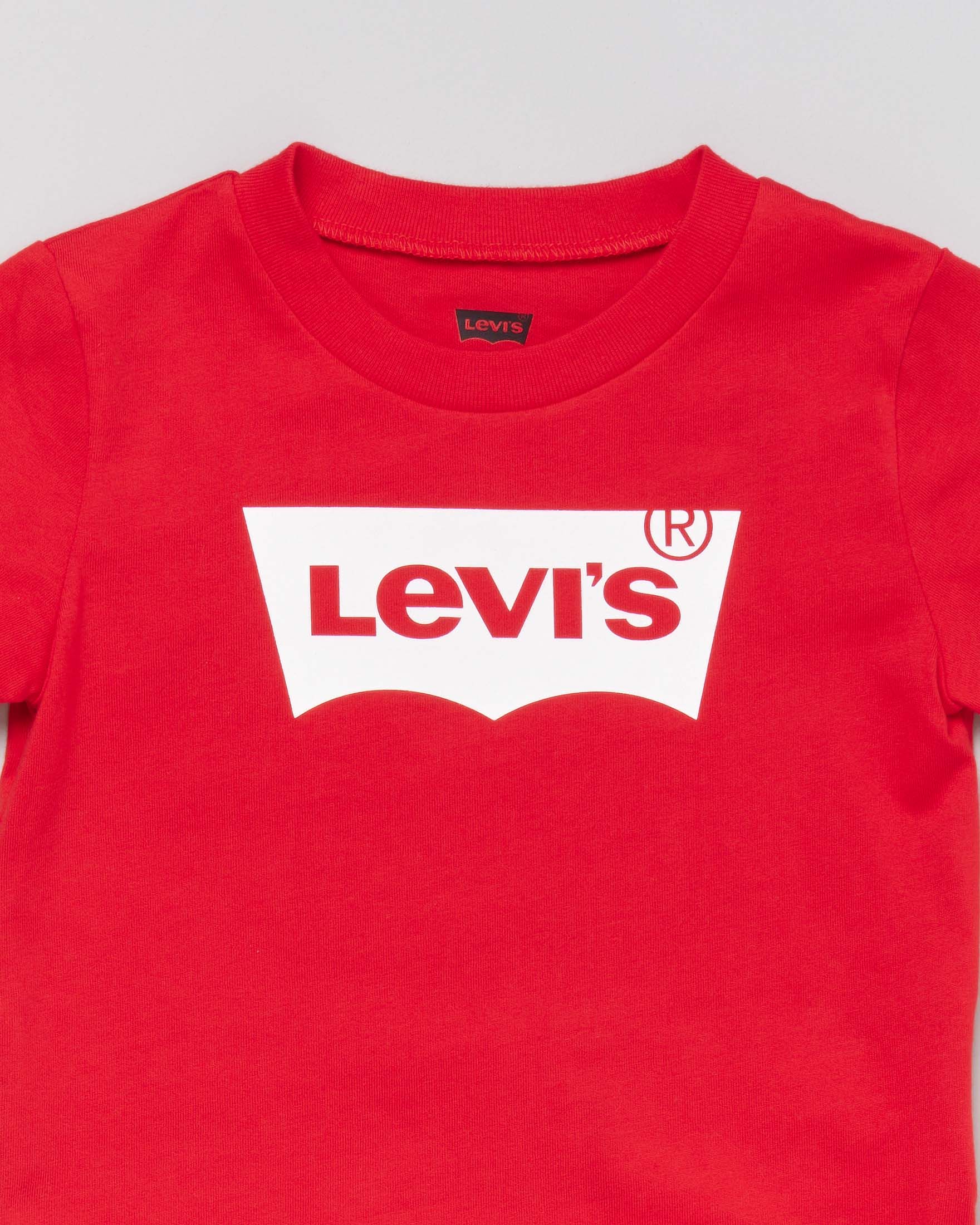T-shirt Levi's rossa mezza manica con logo batwing bianco