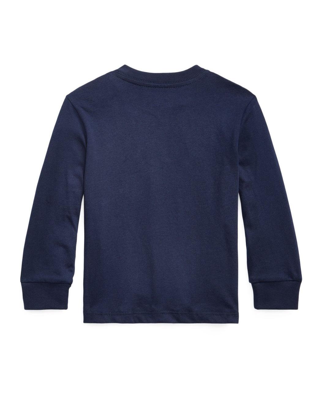 T-shirt Ralph Lauren blu manica lunga in cotone con logo pony rosso