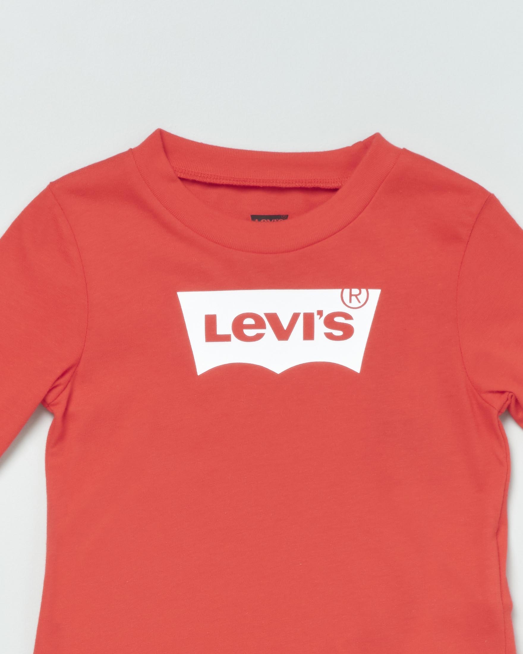 T-shirt Levi's rossa a maniche lunghe con logo batwing bianco