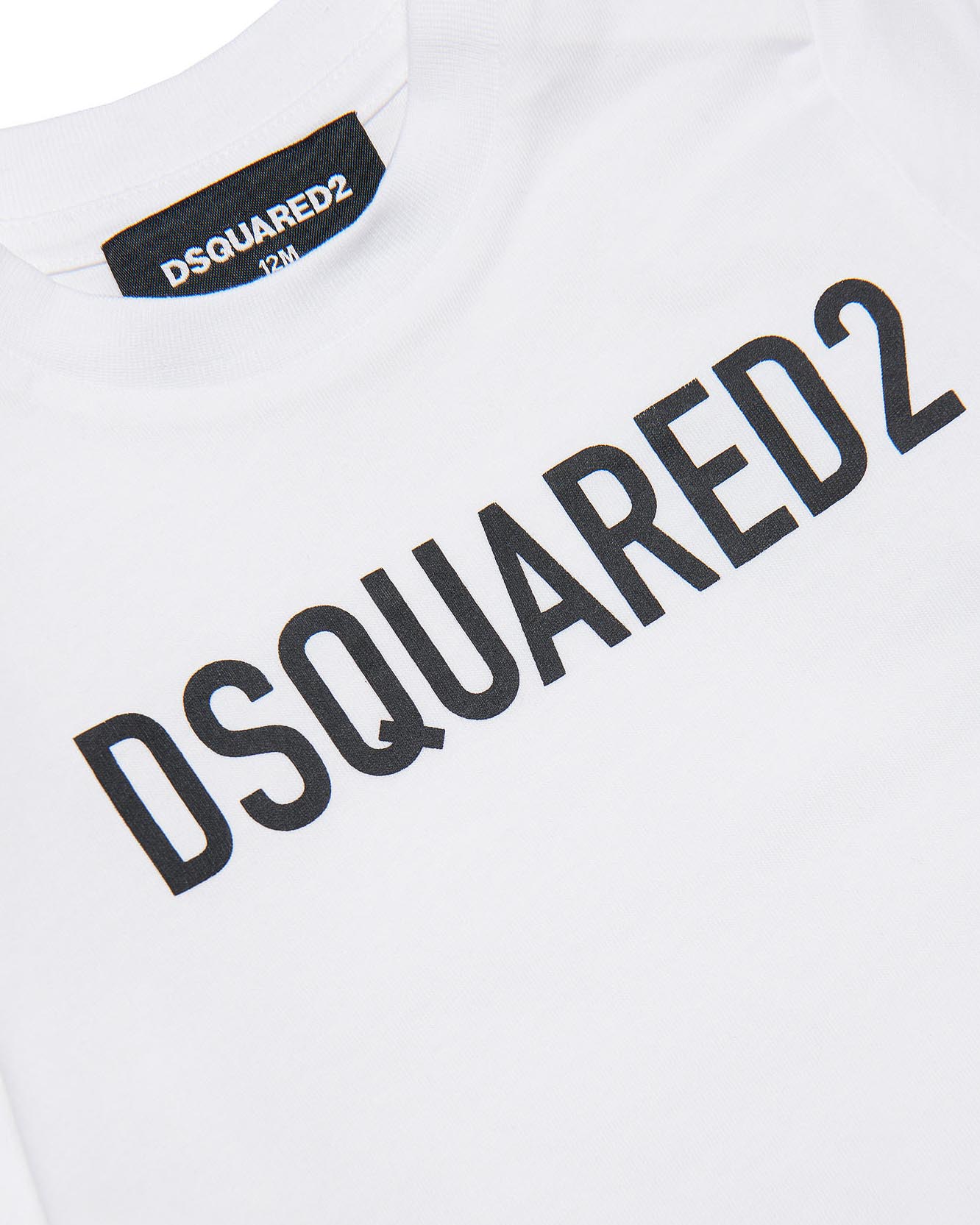 T-shirt Dsquared bianca in cotone a maniche lunghe con scritta logo nera e bottoncini sulla spalla