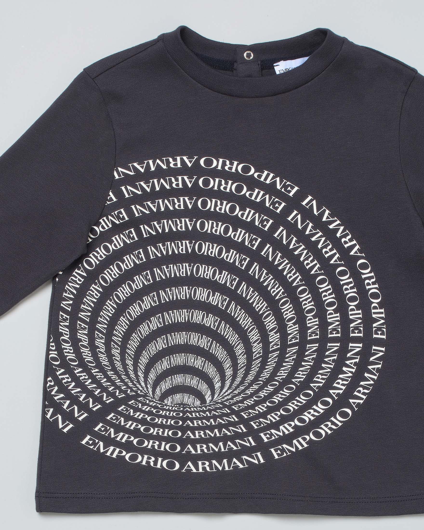 T-shirt Emporio Armani blu in cotone a manica lunga con stampa scritte logo in grafica 3D