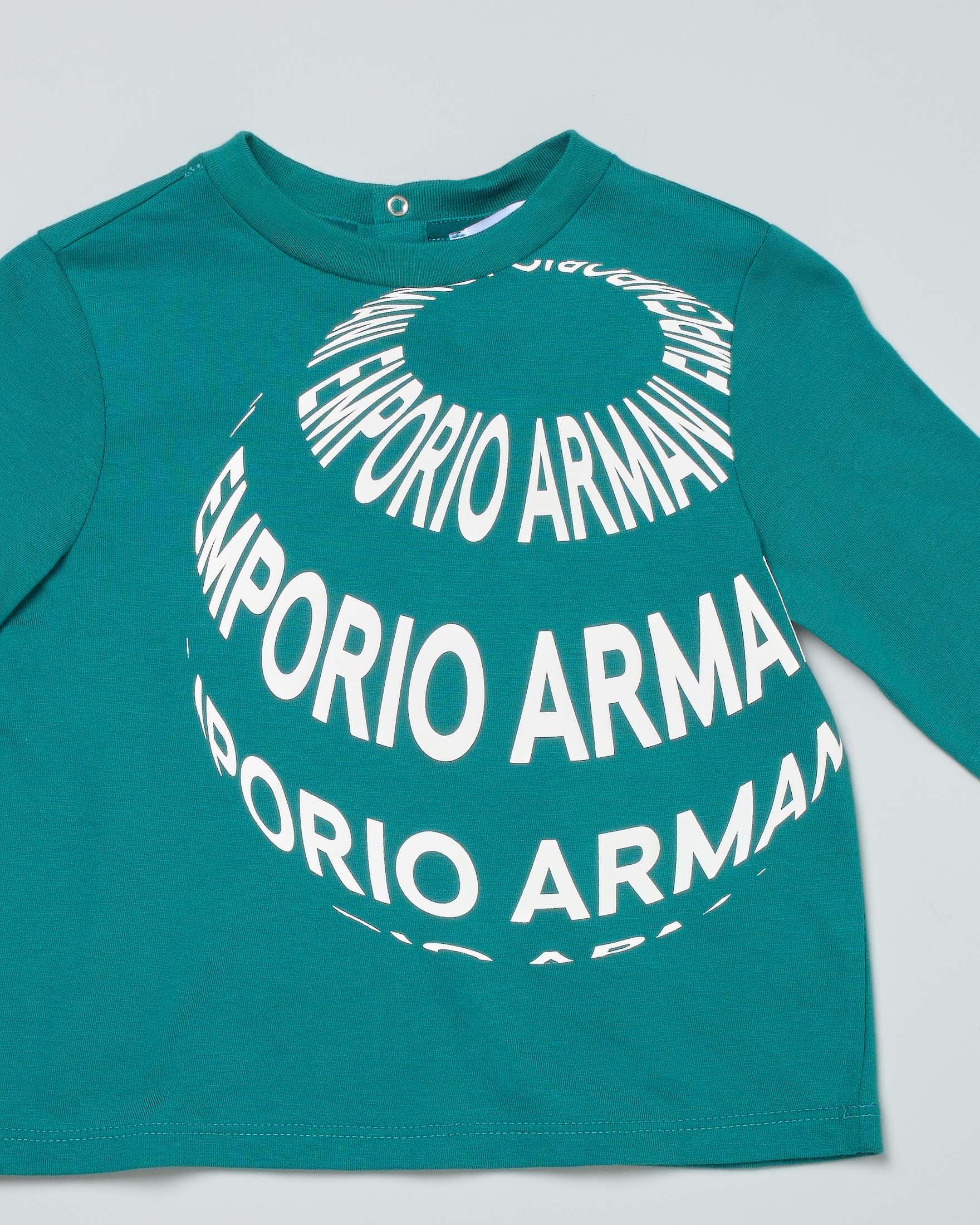 T-shirt Emporio Armani verde in cotone a manica lunga con stampa grafica scritte logo