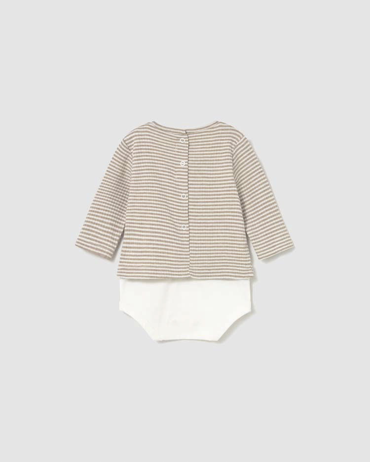 Body Mayoral a righe avorio e beige a maniche lunghe con cagnolino
