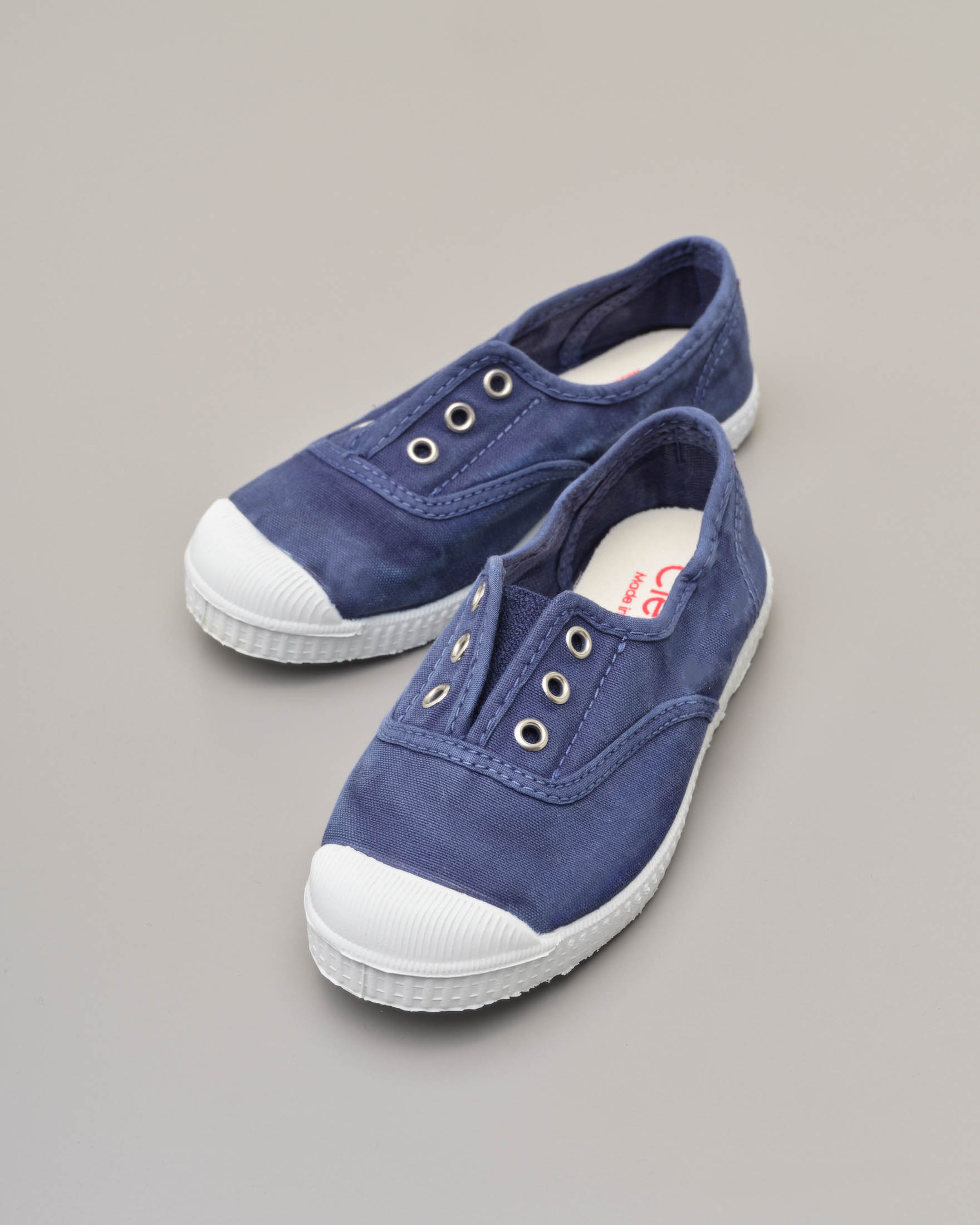Sneakers blu senza lacci in canvas di cotone effetto stone washed