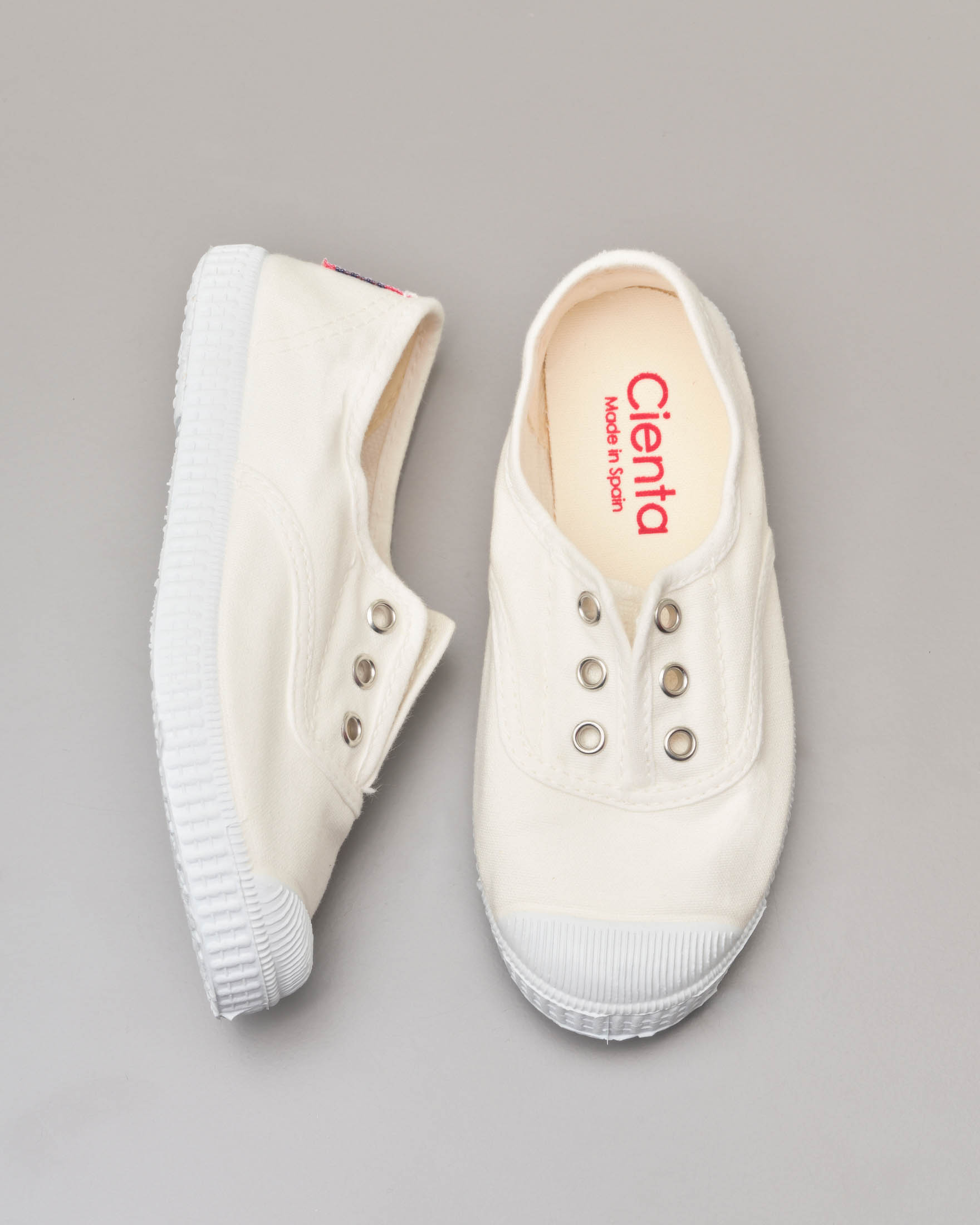 Sneakers bianche senza lacci in canvas di cotone effetto stone washed