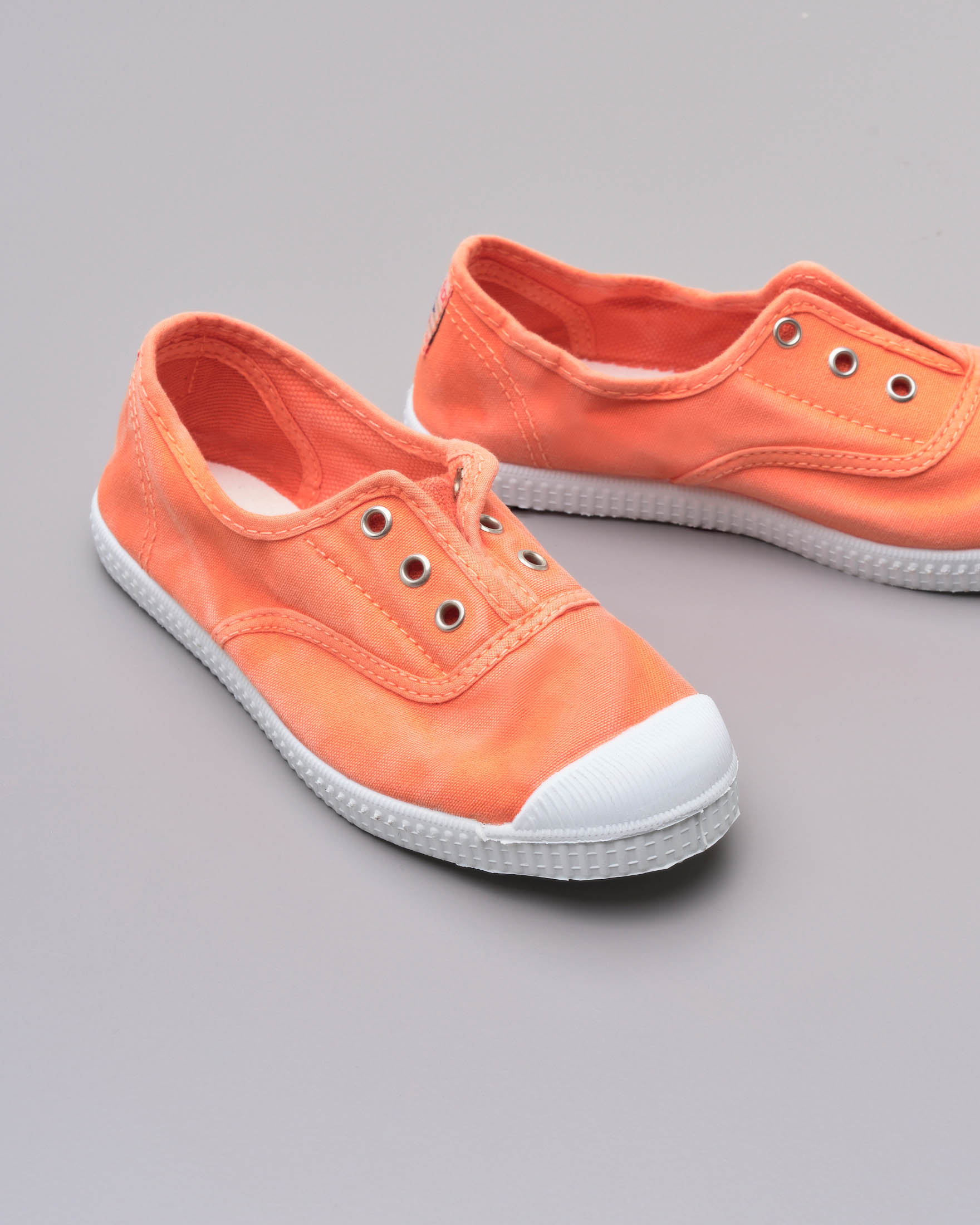 Sneakers slip-on arancioni senza lacci in canvas di cotone effetto stone washed