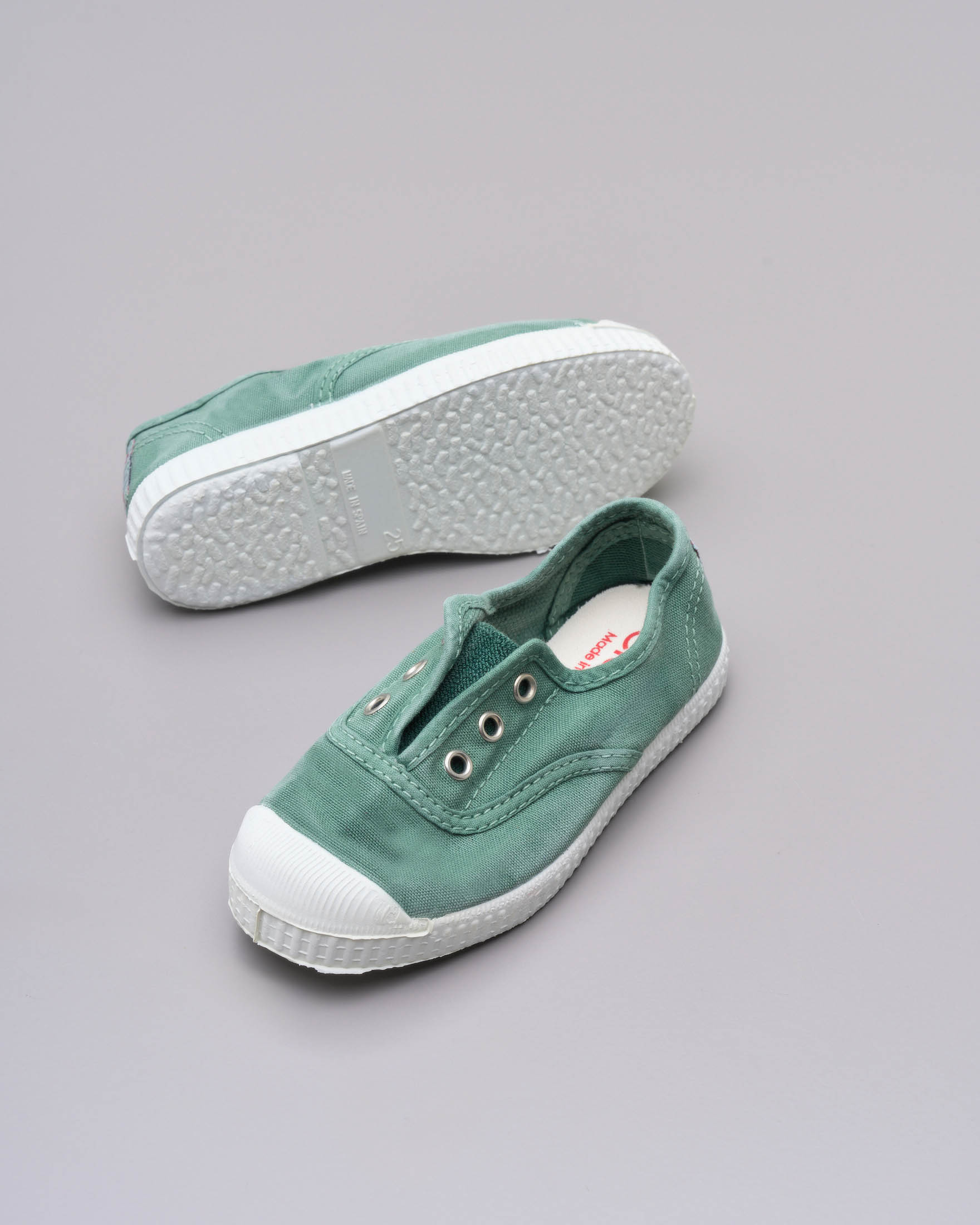 Sneakers slip-on salvia senza lacci in canvas di cotone effetto stone washed